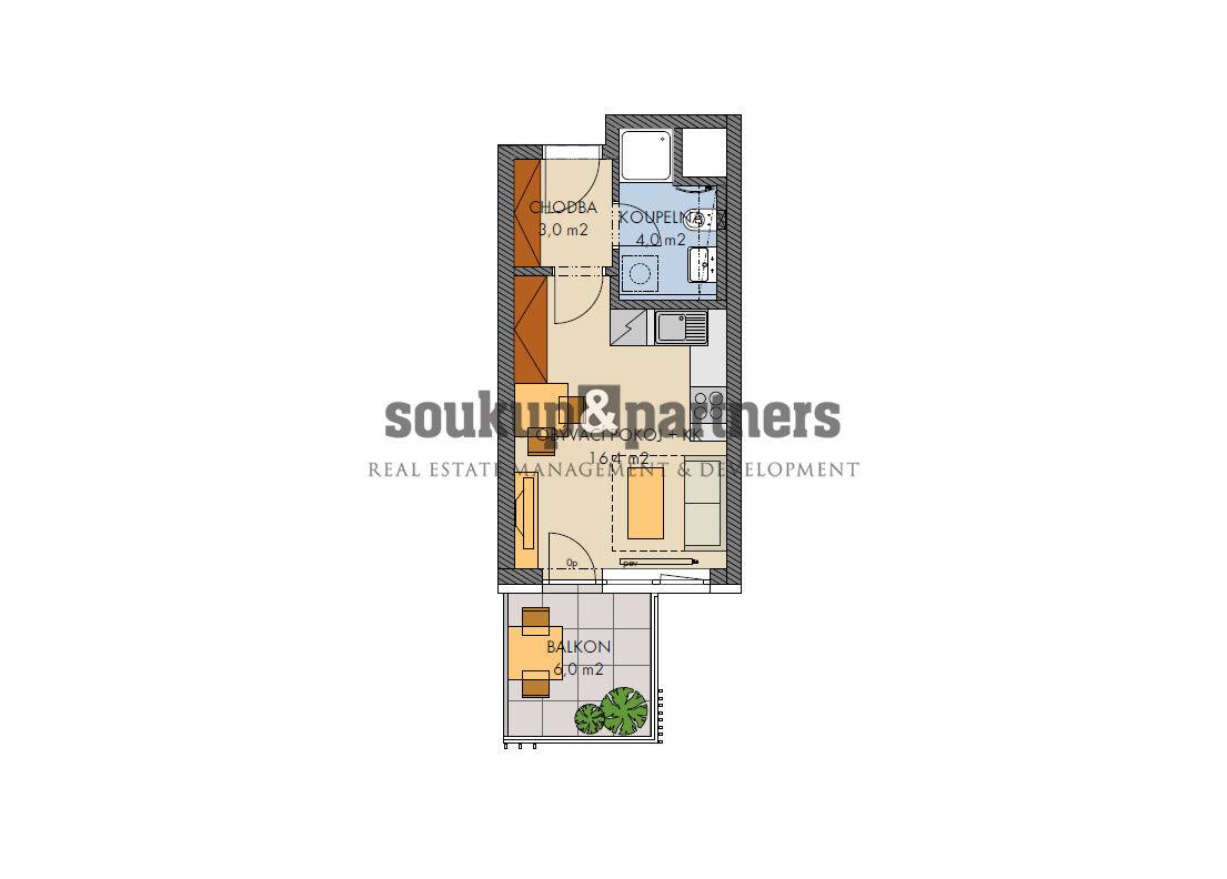 Plocha bytu: 24,1 m² + balkon 6 m²