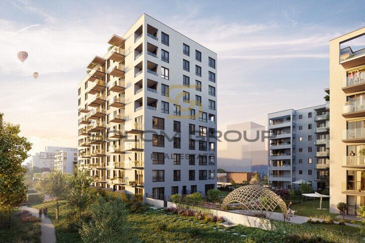 Prodej nového bytu 2+kk o velikosti 41,9 m² + balkon 5 m², který se nachází v 10. patře cihlové novostavby v rezidenci Harfa Park (dům S).