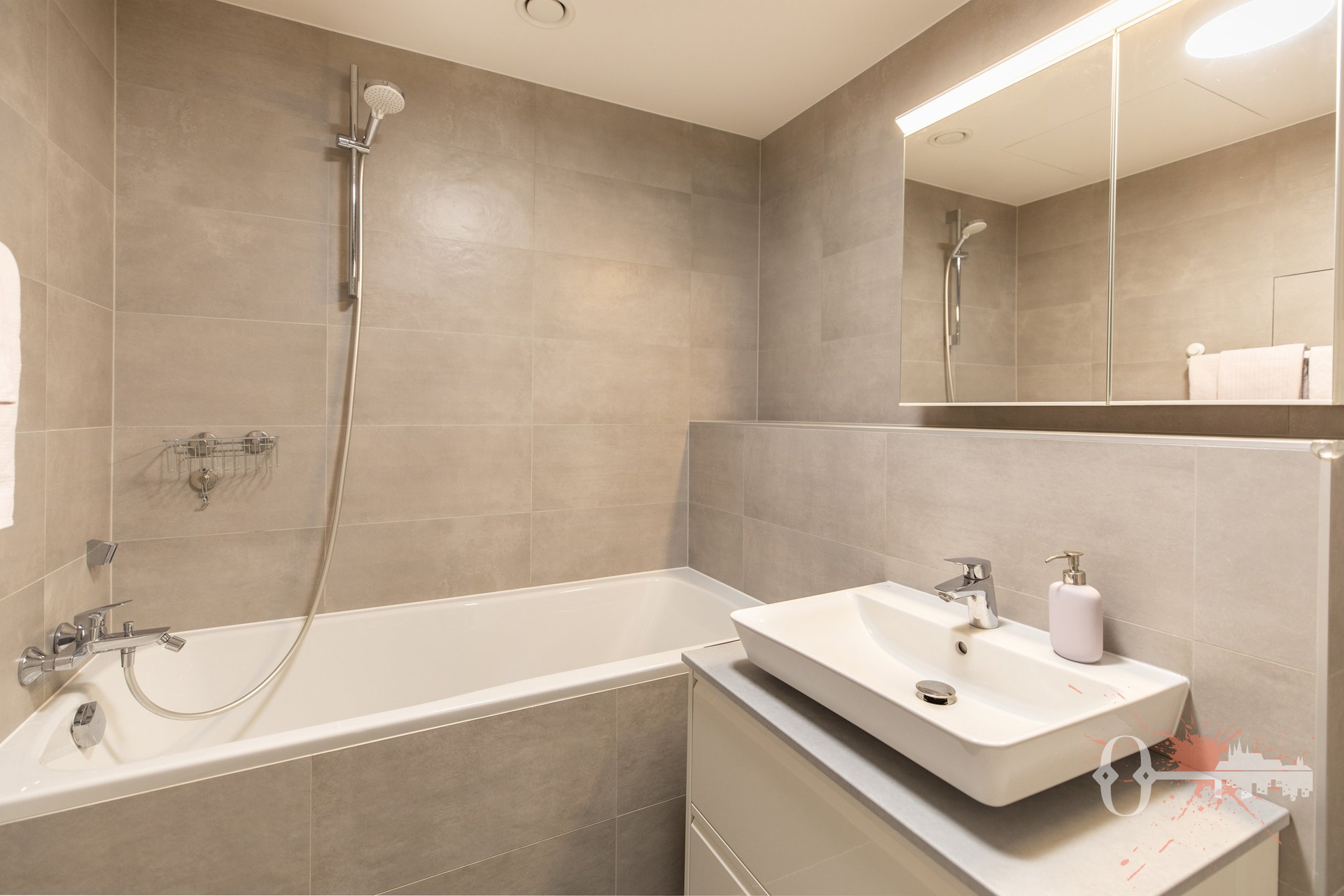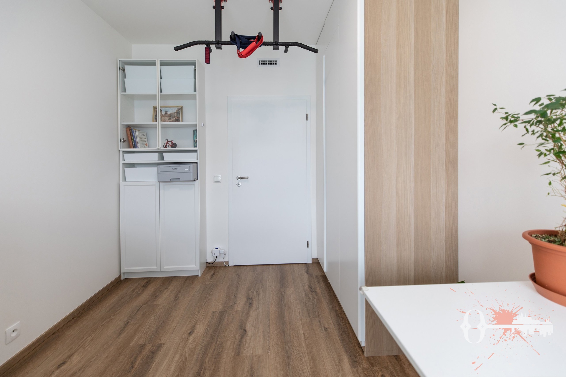 Byt o dispozici 3+kk s podlahovou plochou 70,2 m² se nachází v ulici Laponská v oblíbené části Hloubětína. Interiér působí vzdušně, čistě a harmonicky. Vše je zde stále jako nové – kuchyňská linka i nábytek a stejně jako samotný byt i celý dům jsou ještě v záruce. Díky tomu skýtá bydlení tady nejen moderní vzhled, ale i příjemný pocit jistoty a kvality novostavby.