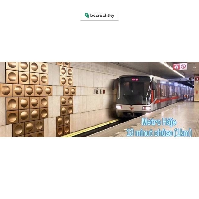 • MHD: Stanice metra C – Háje je vzdálena 13 minut chůze.