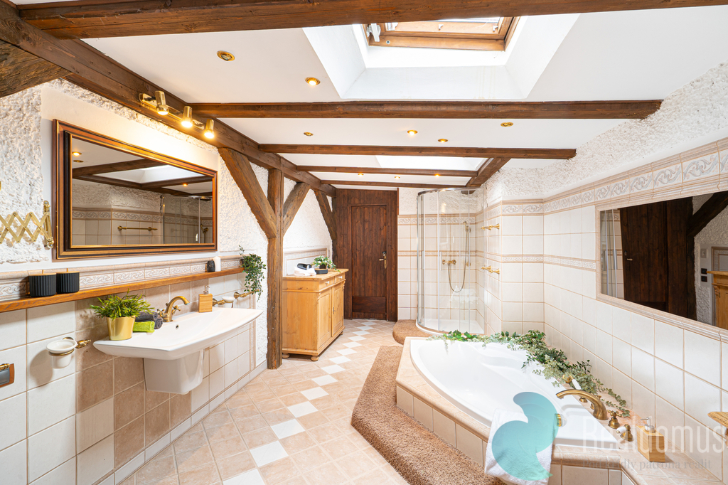 V této úrovni se nachází také prostorná koupelna s vanou, sprchovým koutem a saunou, která poskytuje dokonalé zázemí pro odpočinek a relaxaci.