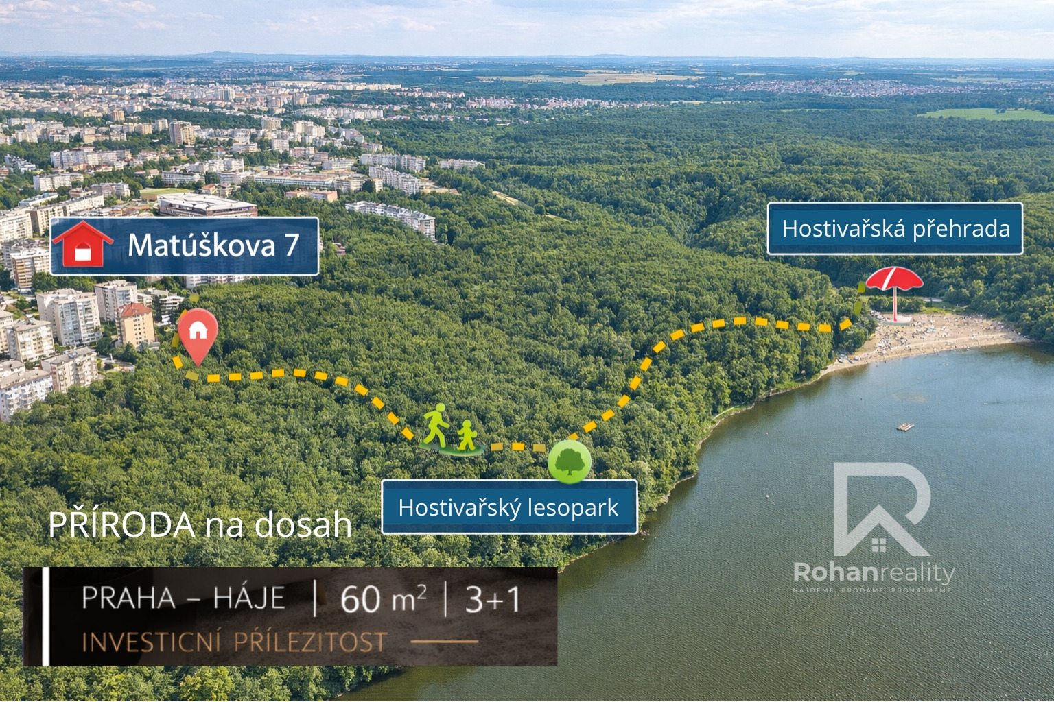 Milovníci přírody ocení blízkost lesoparku Hostivař a Hostivařské přehrady, které jsou ideálním místem pro procházky, sport i relaxaci.