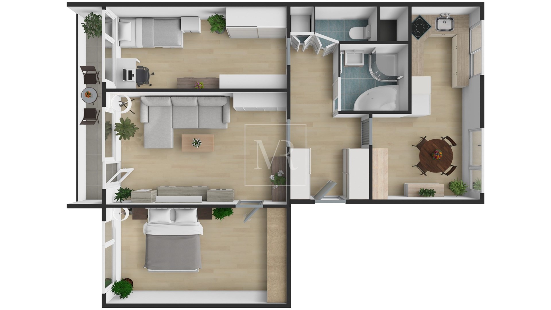Nachází se ve 4. patře bez výtahu a je určen spíše k rekonstrukci. Přestože je velmi dobře dispozičně řešen, představuje také ideální možnost vytvořit si domov přesně podle svého vkusu. K dispozici je příjemná lodžie a také velká komora na patře o velikosti téměř 5 m², která poskytne opravdu štědrý úložný prostor. V přízemí domu je kočárkárna k užívání všem obyvatelům domu.