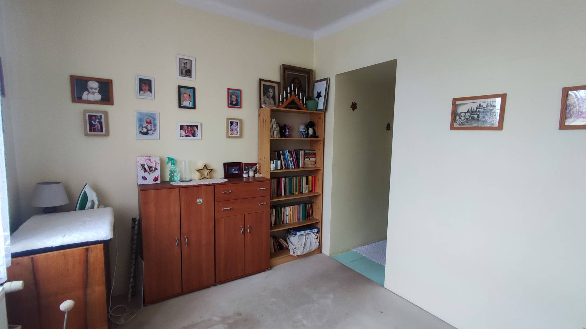 Velikost místností: pokoj 22,8m2, ložnice 17m2, kuchyň 11m2, koupelna s toaletou 5,1m2, komora 2,25m2. Celková plocha obytného podlaží vychází s nízkou mírou odchylky na 60m2. Bytový prostor není renovovaný a je v udržovaném standardním stavu odpovídajícímu stáří.