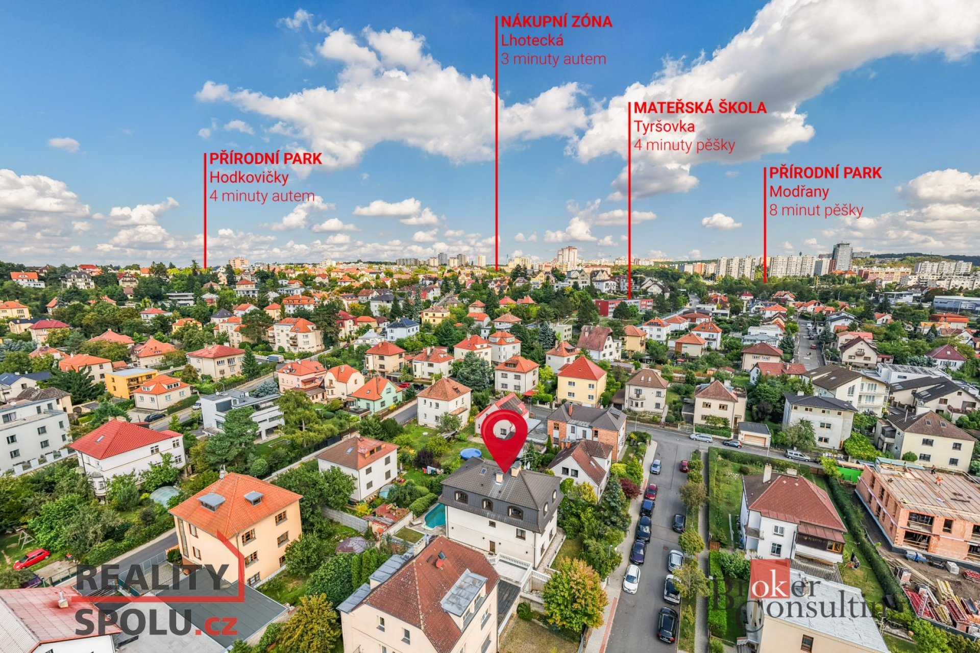 Prodej reprezentativní vily – Praha 4 Modřany, ul. Pancířova 287 m² užitné plochy, 3 podlaží, garáž