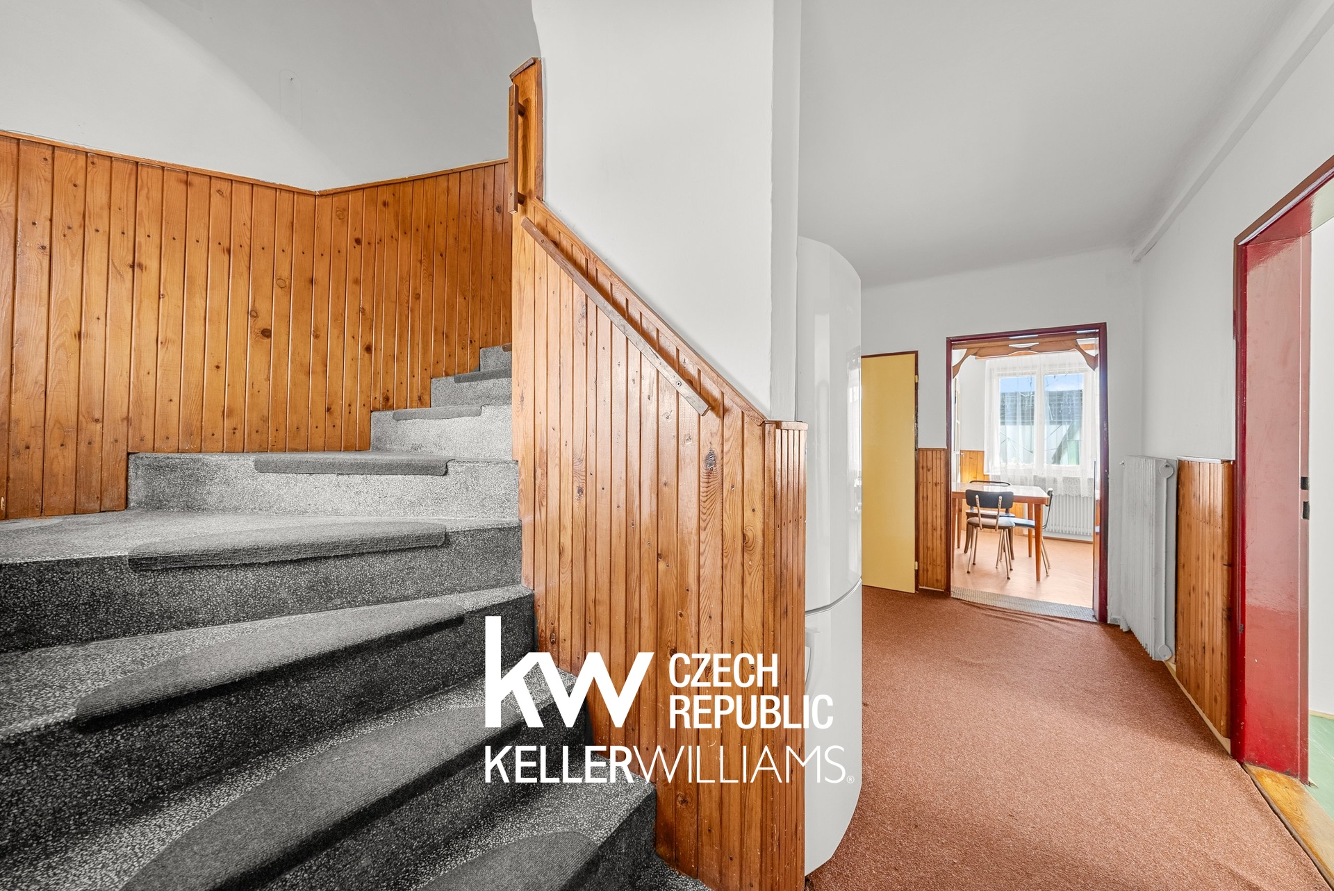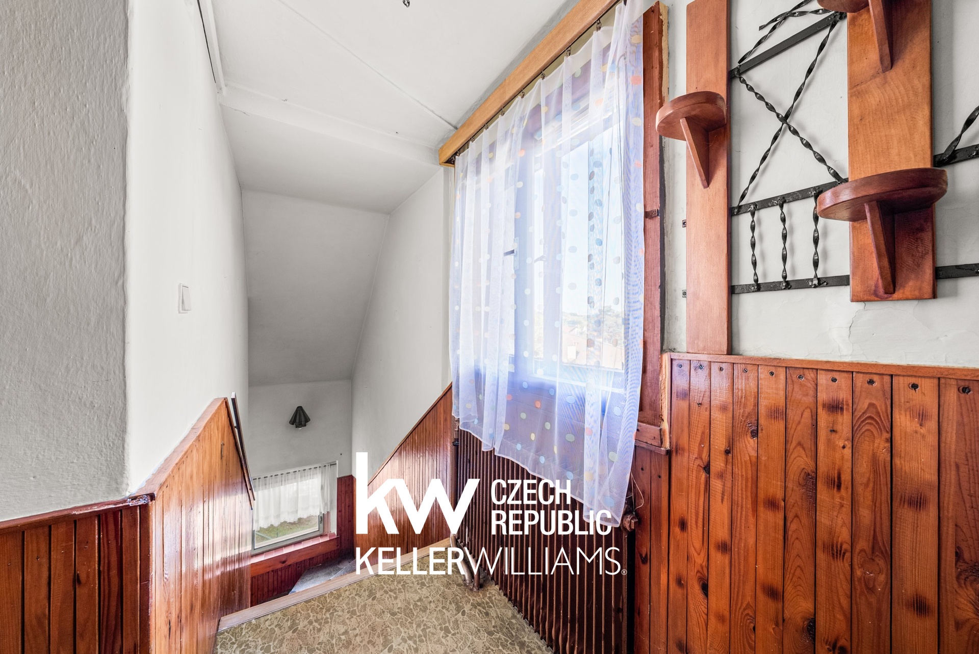 Dům je dispozičně řešen jako 5+1+kk. V dolním patře se nachází dvě obytné místnosti, kuchyně, koupelna a samostatné wc. V horním patře potom dvě obytné místnosti, kuchyňský kout a menší podlouhlý prostor, např. na šatnu apod. Objekt také zahrnuje sklepy, dílnu, garáž a zahradní stavbu, což poskytuje dostatek úložného prostoru pro řešení každodenních potřeb.