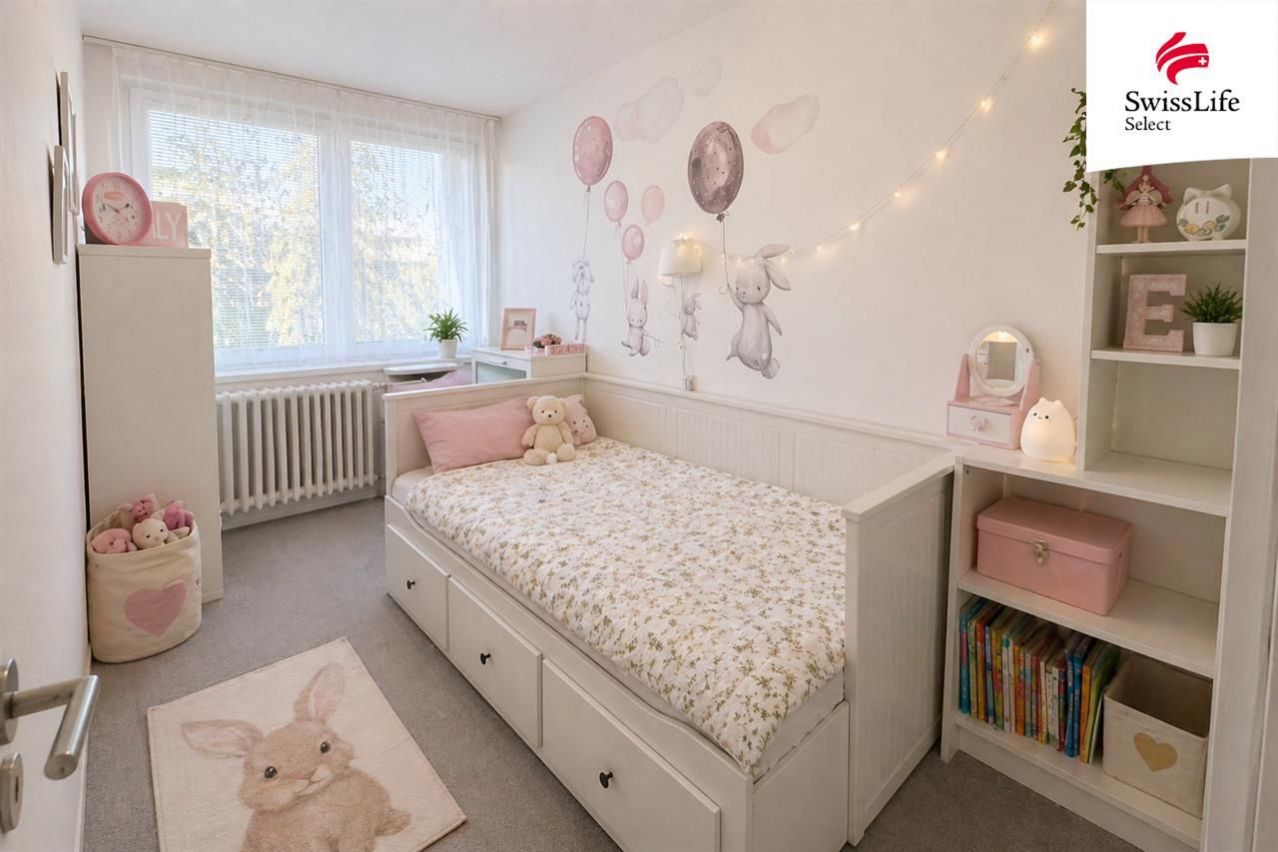 ložnice, dva dětské pokoje, chodba s vestavěnou skříní, koupelna s vanou a samostatné WC