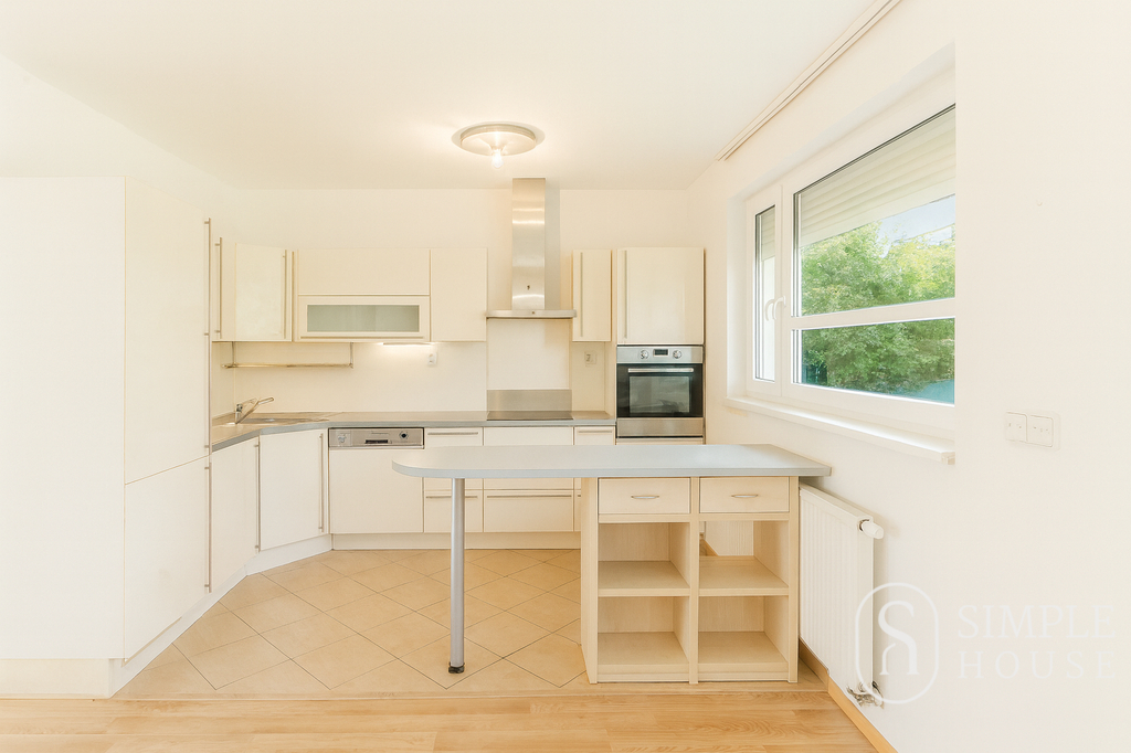 Na obývací prostor navazuje moderní, plně vybavená kuchyň s ostrůvkem a vestavěnými spotřebiči (lednice, myčka, pečicí a mikrovlnná trouba, digestoř), která splní očekávání i náročnějších kuchařů. V přízemí se dále nachází praktická spíž, koupelna se sprchovým koutem a toaletou a vstup do garáže.
