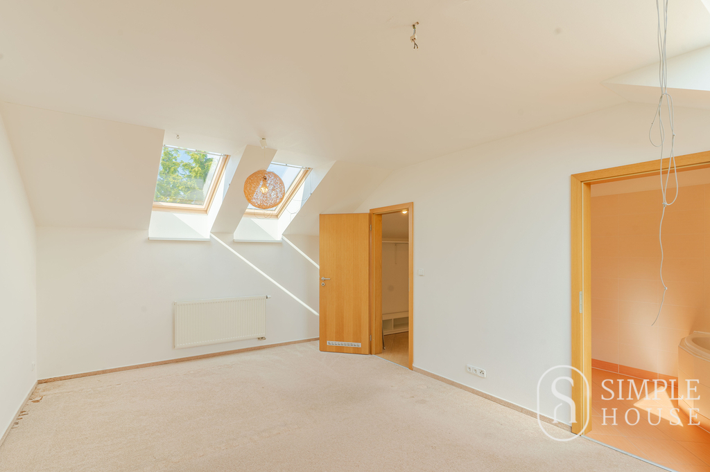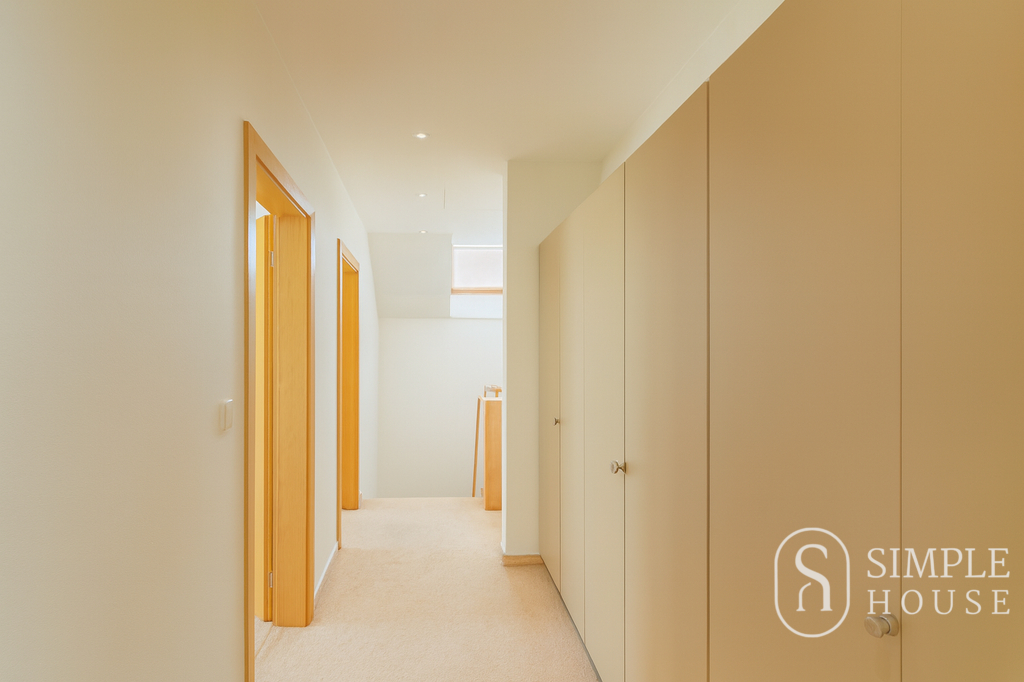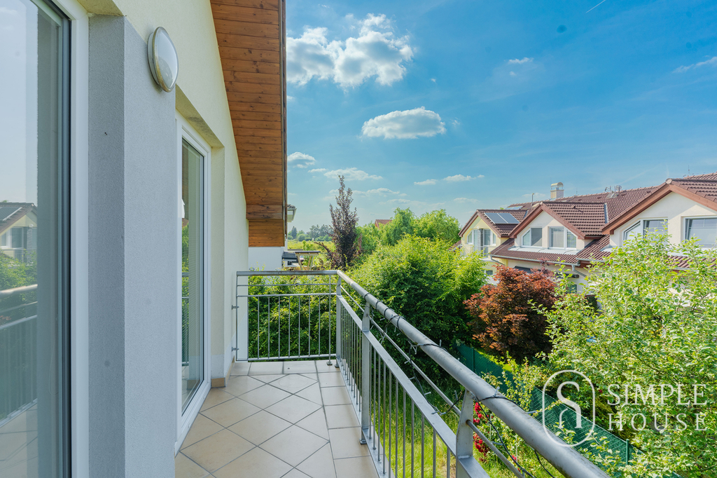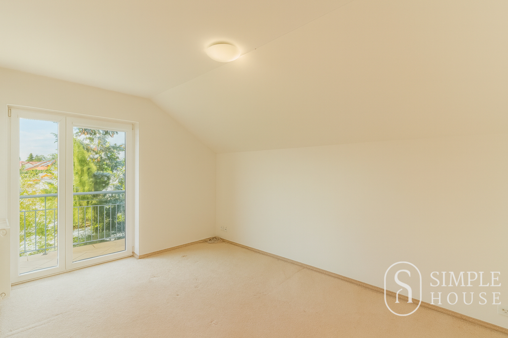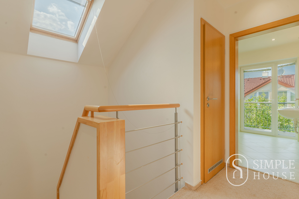 Do patra vede široké schodiště, které umocňuje pocit prostornosti a vzdušnosti. Horní podlaží nabízí čtyři samostatné ložnice, z nichž tři mají vlastní balkon. Hlavní ložnice disponuje vlastní koupelnou a šatnou, dále je zde druhá koupelna s toaletou a samostatná šatna.