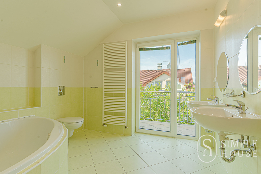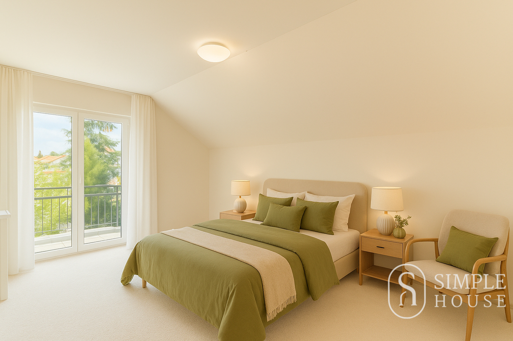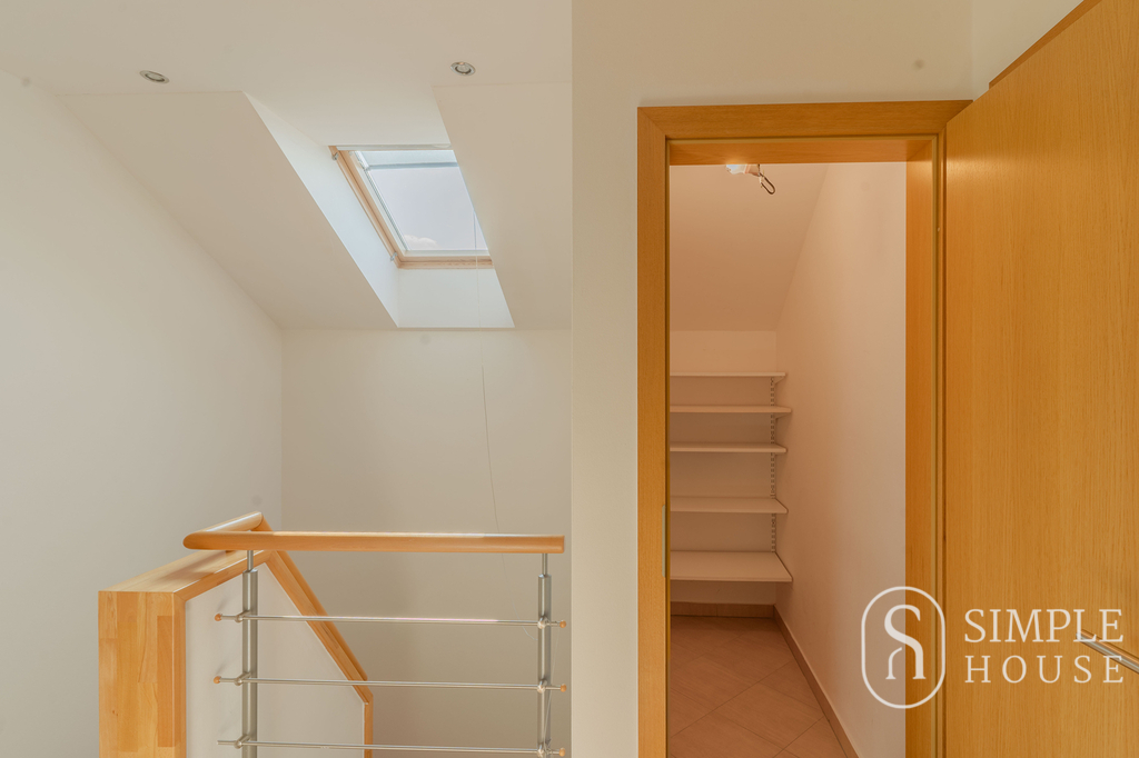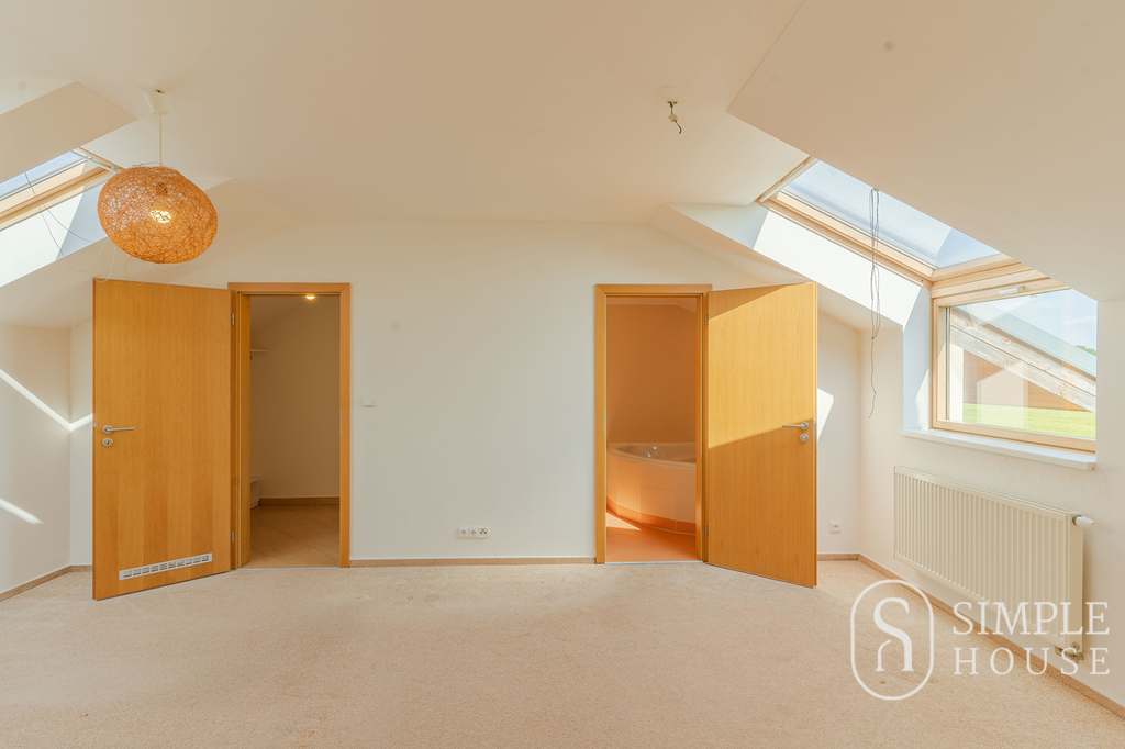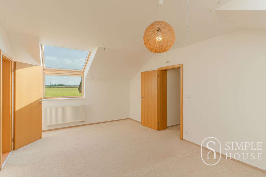 Do patra vede široké schodiště, které umocňuje pocit prostornosti a vzdušnosti. Horní podlaží nabízí čtyři samostatné ložnice, z nichž tři mají vlastní balkon. Hlavní ložnice disponuje vlastní koupelnou a šatnou, dále je zde druhá koupelna s toaletou a samostatná šatna.