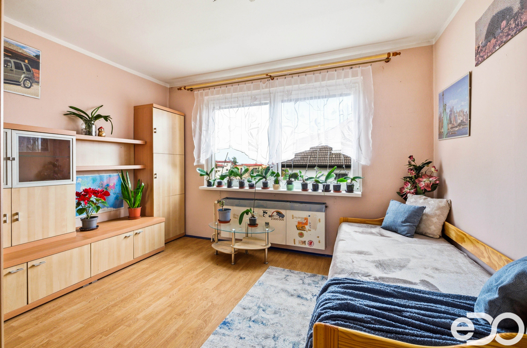 Dům je rozdělen na dvě samostatná patra o dispozici 3+1, kdy první patro nabízí přibližně 94 m² a druhé patro navíc s terasou. Každá jednotka disponuje prostorným obývacím pokojem, samostatnou kuchyní, ložnicí, (dětským) pokojem, koupelnou, odděleným WC i praktickými úložnými prostory v podobě komory a spíže. Dům je napojen na plynové vytápění, rozvody vody byly v posledních letech modernizovány do plastu, elektřina je vedena v mědi. Okna i střecha prošly postupnou obnovou, což přispívá k celkově udržovanému stavu nemovitosti. Součástí je také studna s užitkovou vodou a retenční nádrž, což ocení zejména milovníci zahrady.