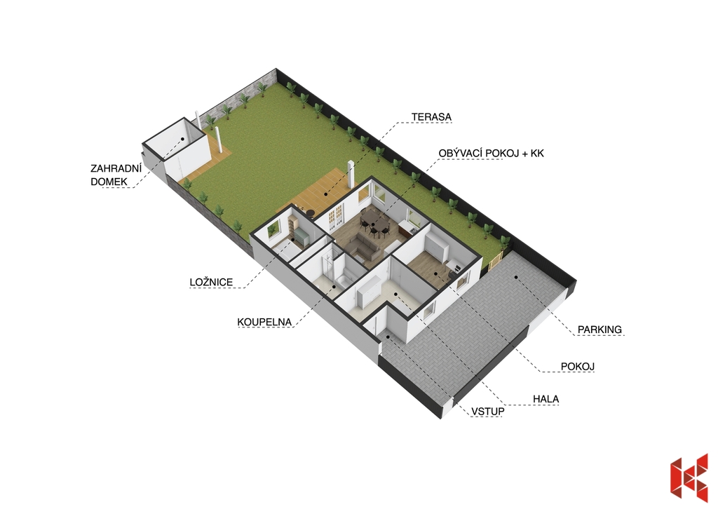 ✔ Slunečnou zahradu s terasou a zahradním domkem