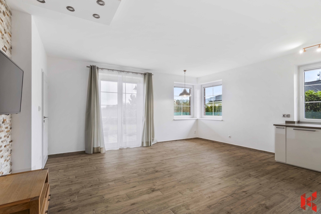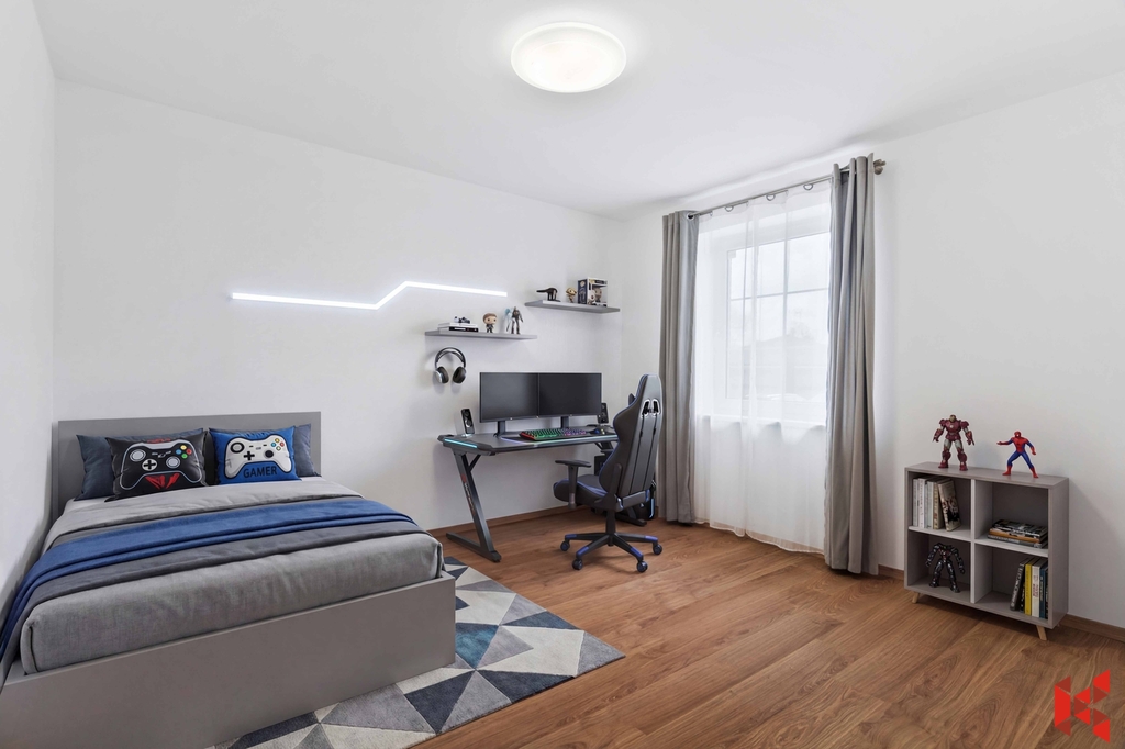 ✔ Dlažbu v hale a v obývacím pokoji, v ložnicích plovoucí podlahu