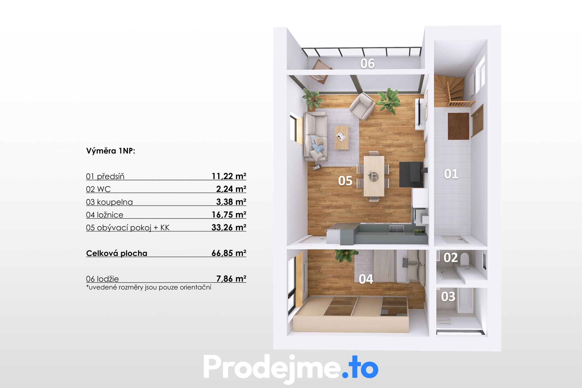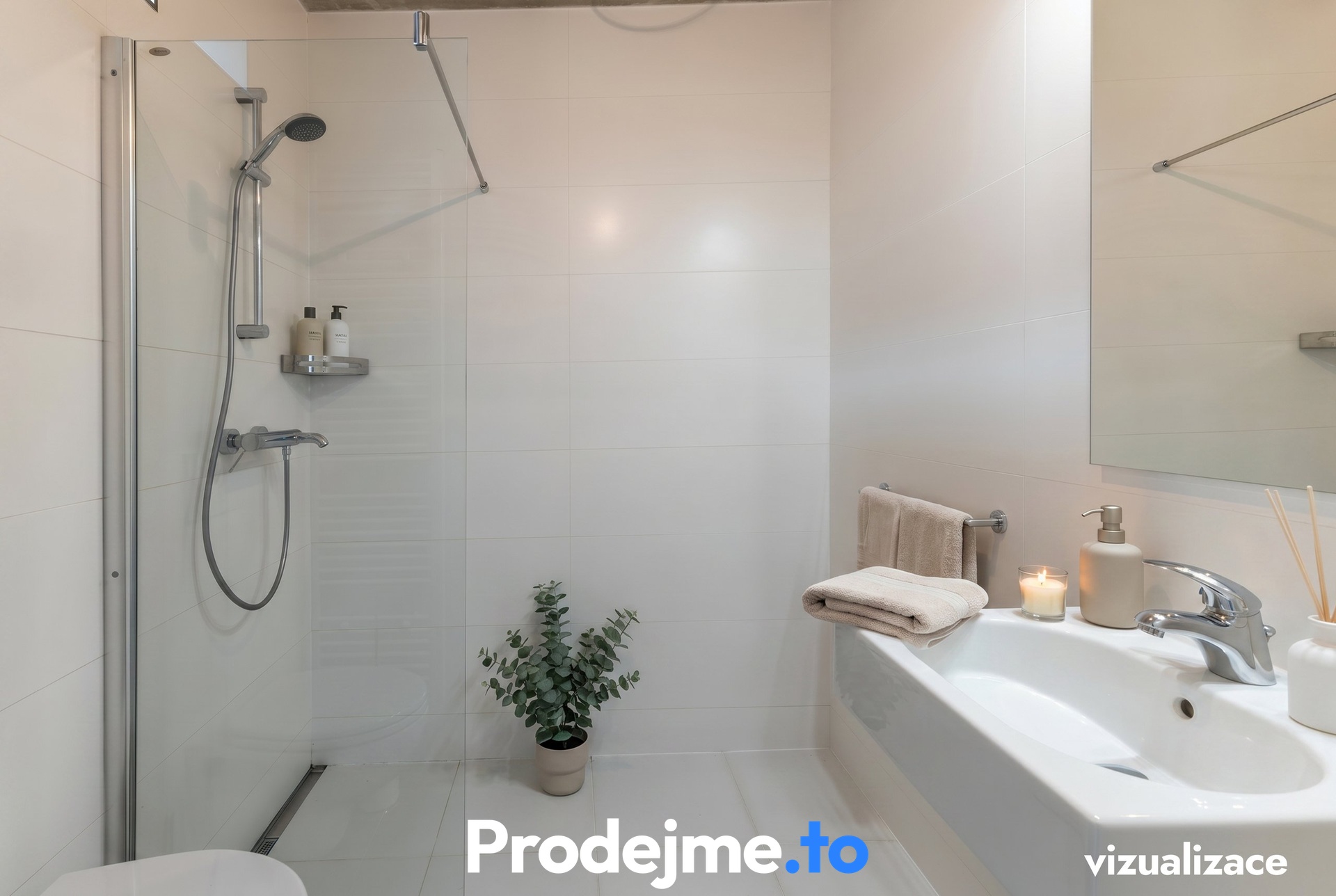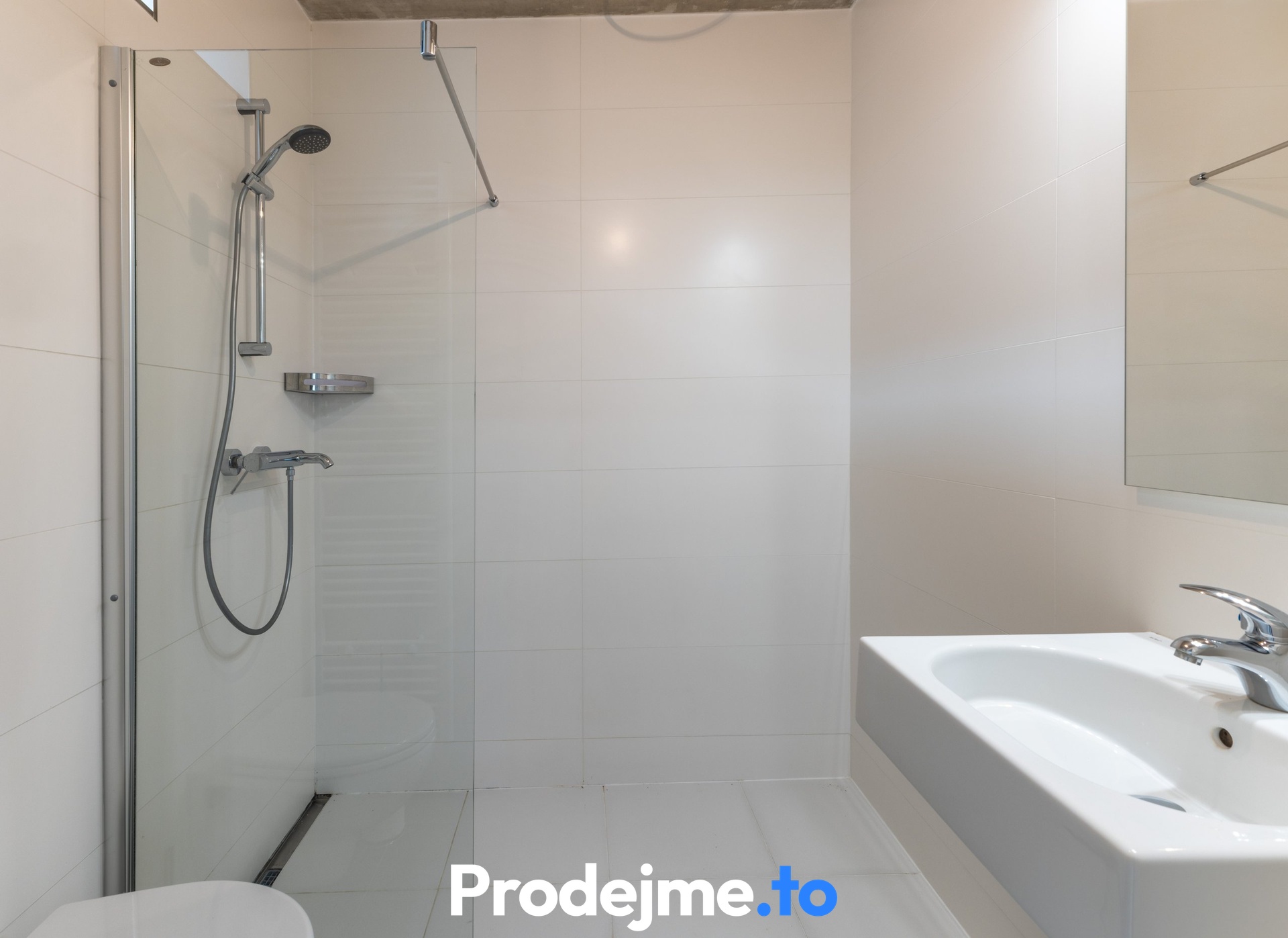 O tom vás ihned přesvědčí obývací pokoj s designovými kamny Romotop, vybavená kuchyňská linka a vstup na lodžii. Ať už si sednete s knihou, zapálíte oheň v kamnech nebo jen v tichu posedíte, ten pocit „doma“ tady přijde přirozeně. Právě to vám dá možnost vychutnat si slunné dny na čerstvém vzduchu, aniž byste museli opustit pohodlí domova. Příjemnou atmosféru má i ložnice s velkou šatní skříní a vlastním vstupem do koupelny s vanou a toaletou. První patro je přístupné přímo z úrovně parkování a doplňuje ho prostorná předsíň s místem pro šatnu.