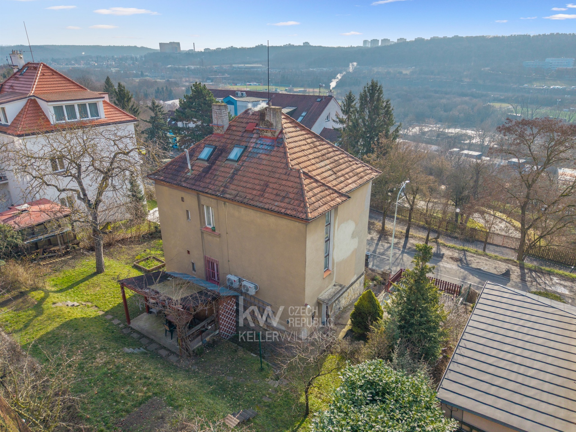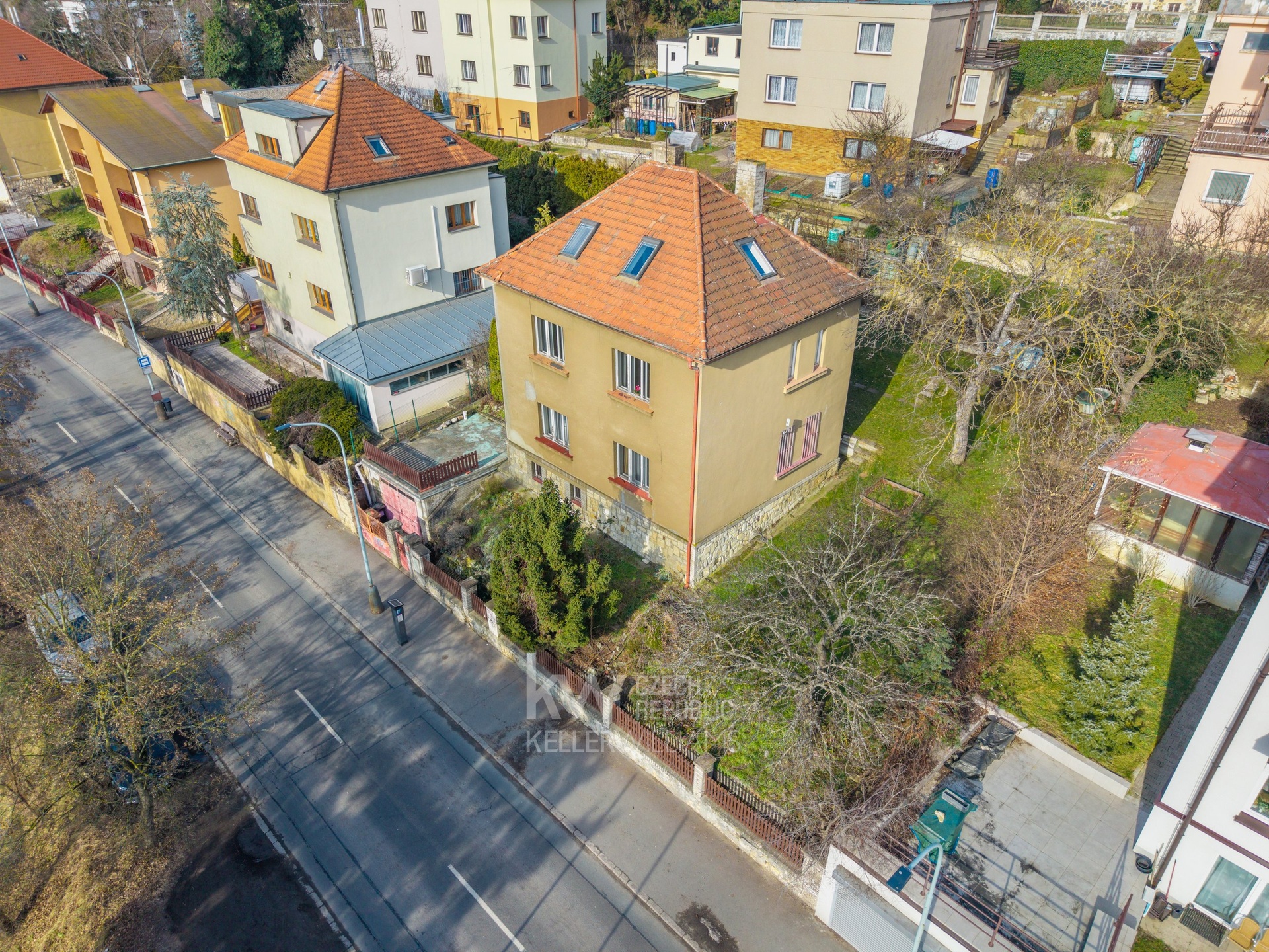 - samostatná garáž (cca 25 m²) - vjezd přímo z ulice, za bránou