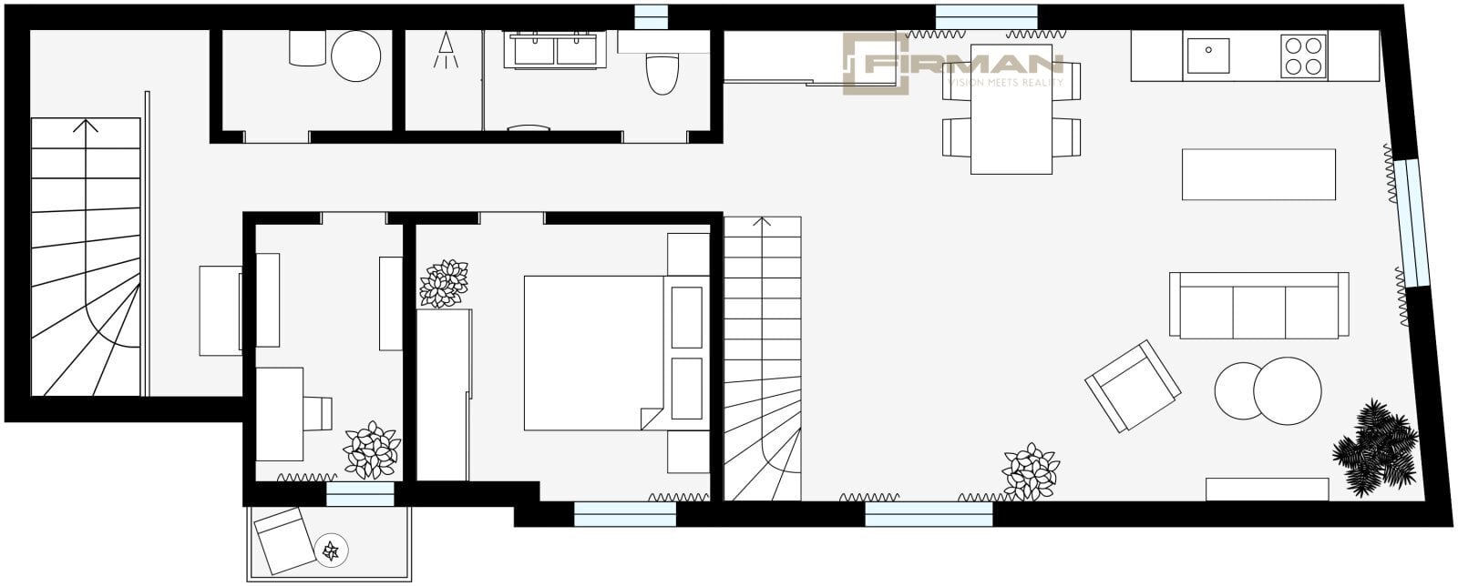 Dům disponuje dvěma samostatnými bytovými jednotkami, každá s vlastní kuchyní, koupelnou a vstupem ze společné chodby. Uspořádání nabízí široké možnosti využití – například komfortní bydlení pro širší rodinu s dostatkem soukromí, kombinaci bydlení a podnikání, nebo pronájem jedné části domu. V případě potřeby lze obě jednotky jednoduše propojit.