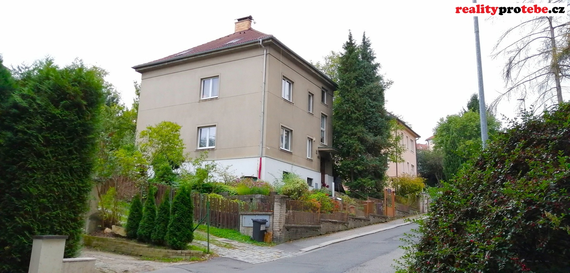Rodinný dům disponující dvěma samostatnými byty (3+1 a mezonet 5+1) je z cca 1/2 podsklepený. Pozemek o celkové výměře 771m² zahrnuje zastavěnou plochu domu s přístupovou cestou (126 m²) a zahradu (645 m²). Před domem se nachází podzemní sklípek využitelný k uskladnění ovoce a zeleniny. Pozemek svažitý, terasovitý, kompletně oplocený. Dům zajištěn bezpečnostním zařízením, vybaven centrálním vysavačem; vytápění a ohřev vody pro každý byt realizován odděleně. Reálná spotřeba vody, plynu a elektřiny zajištěna pro jednotlivé byty měřidly.