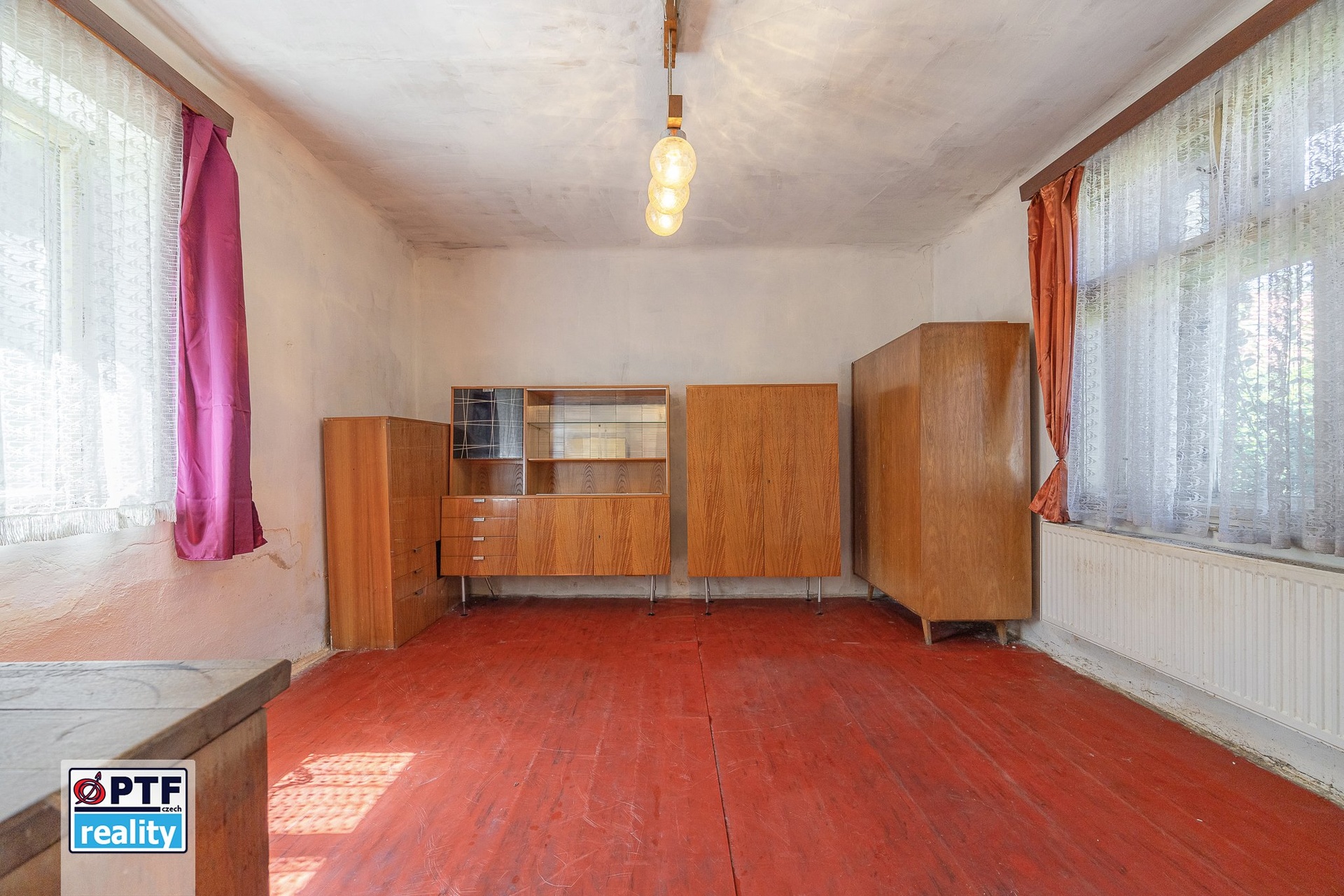 V patře je neprůchozí pokoj, chodba a půdní prostor s možností rozšíření obytného prostoru.