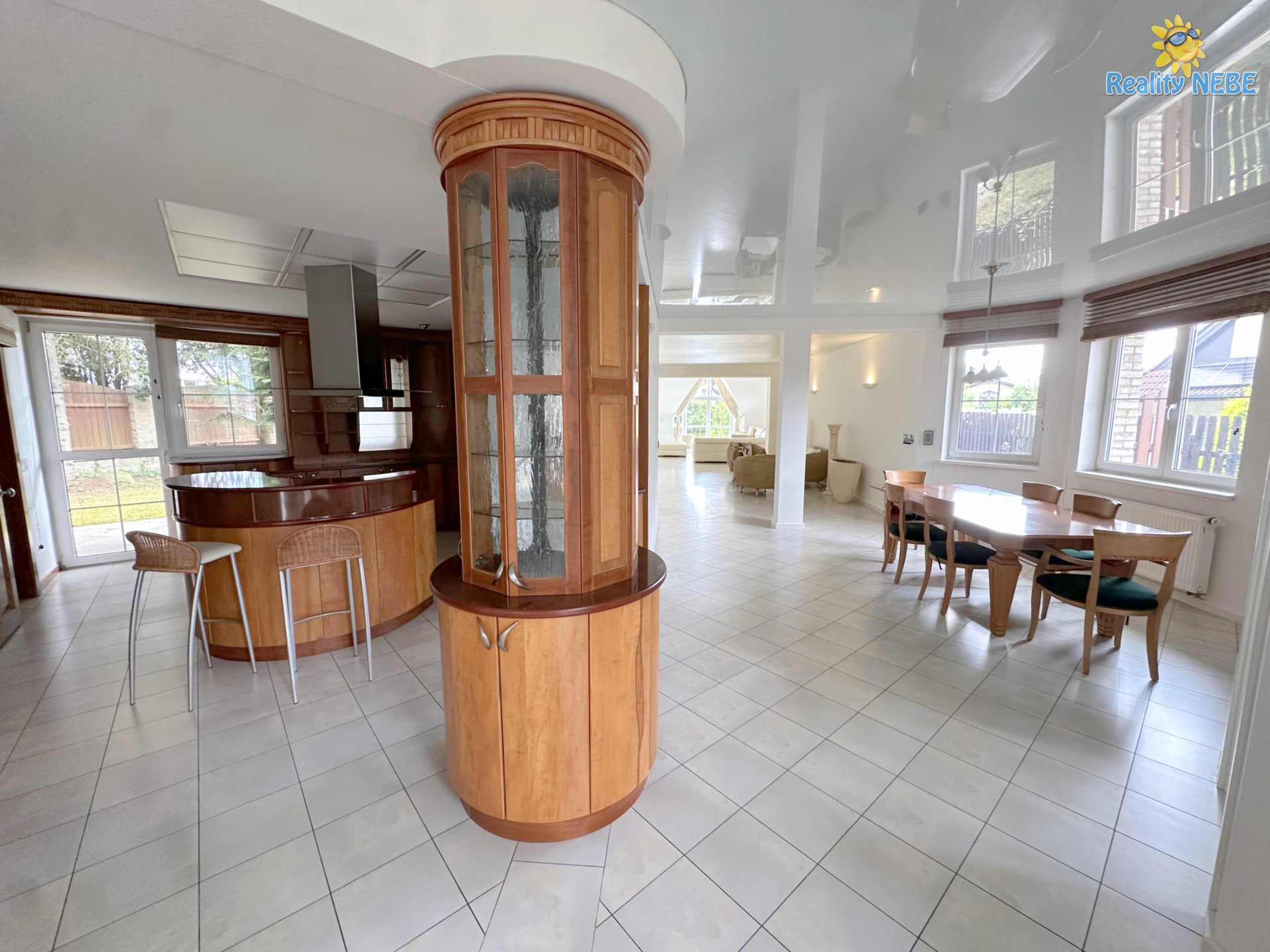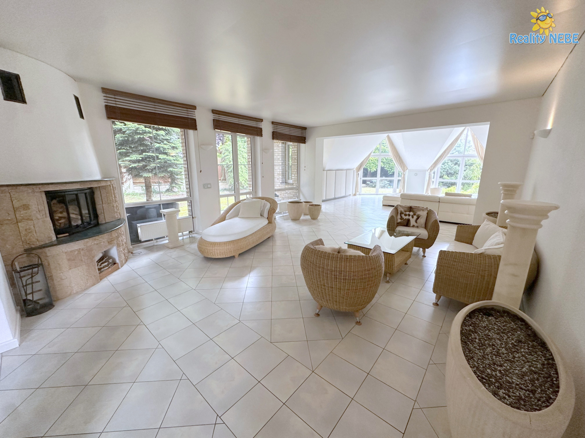 Nabízíme k prodeji rodinný dům se zahradou v Praze - Benicích. Třípodlažní vila z roku 2000 o vnitřní podlahové ploše 427m2 s dvojgaráží 39m2, náleží k ní zahrada o velikosti 580m2. Dispozice je atypická, dominantou 1NP je obývací pokoj s krbem a výstupy do zahrady, jídelna, kompletně zařízená kuchyně, koupelna, špajz a spousta úložných prostor. Také dvojgaráž přístupná ze vstupní chodby. 2NP skýtá 3 ložnice (2 s výstupem na balkon), 2 koupelny s WC, 2x šatna. 1PP je velmi prostorné, celkem 85m2 rozděleno do spousty úložných, technických prostor, je zde další koupelna s WC a sauna. Dům je napojen na všechny inženýrské sítě, vlastní ústřední vytápění. Obytné místnosti jsou orientovány na Jižní a Jihozápadní stranu.