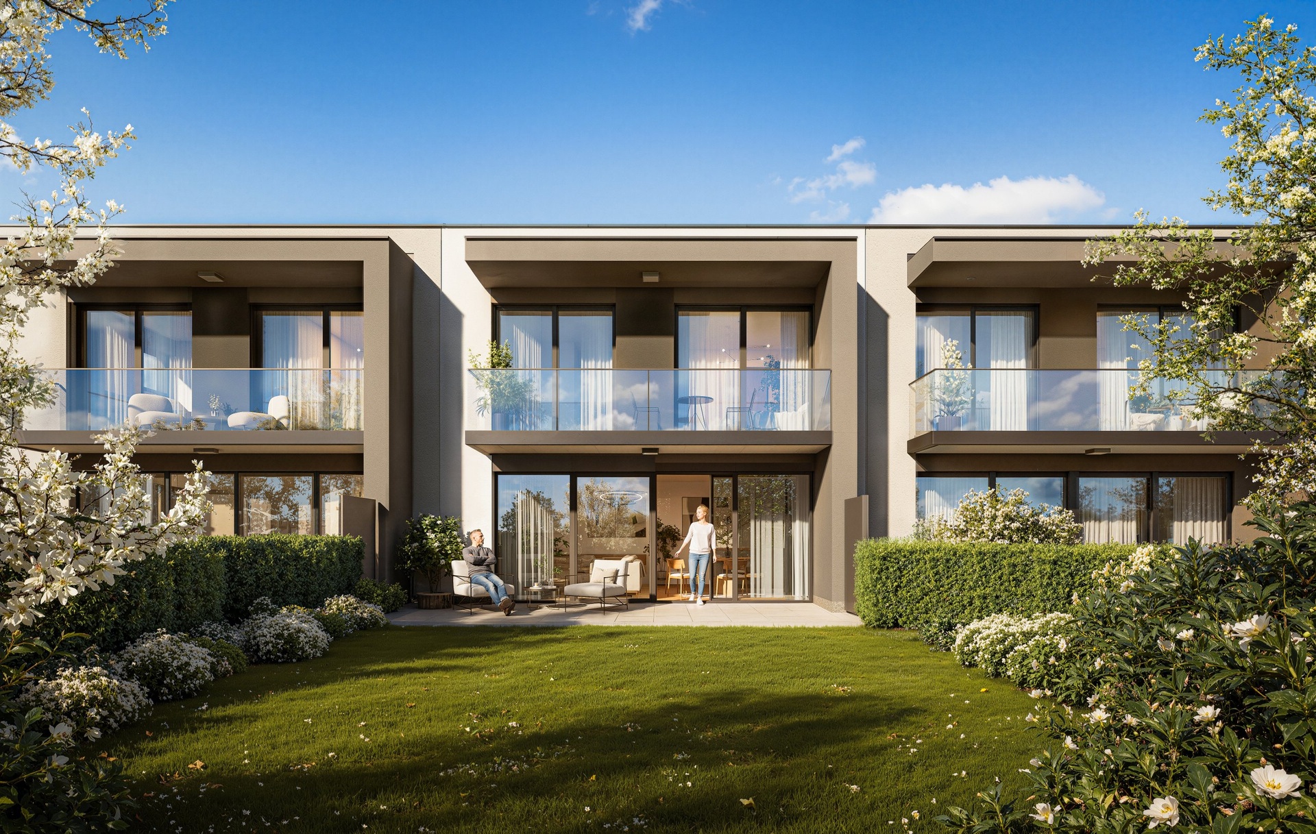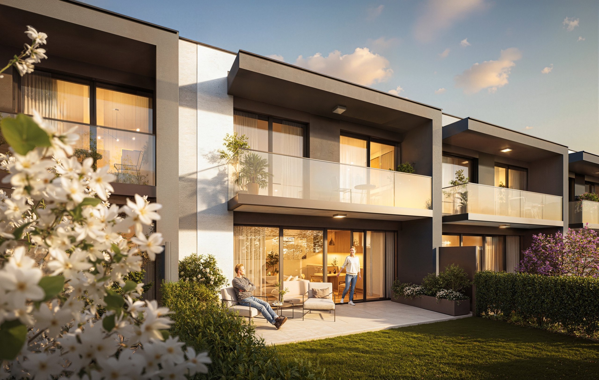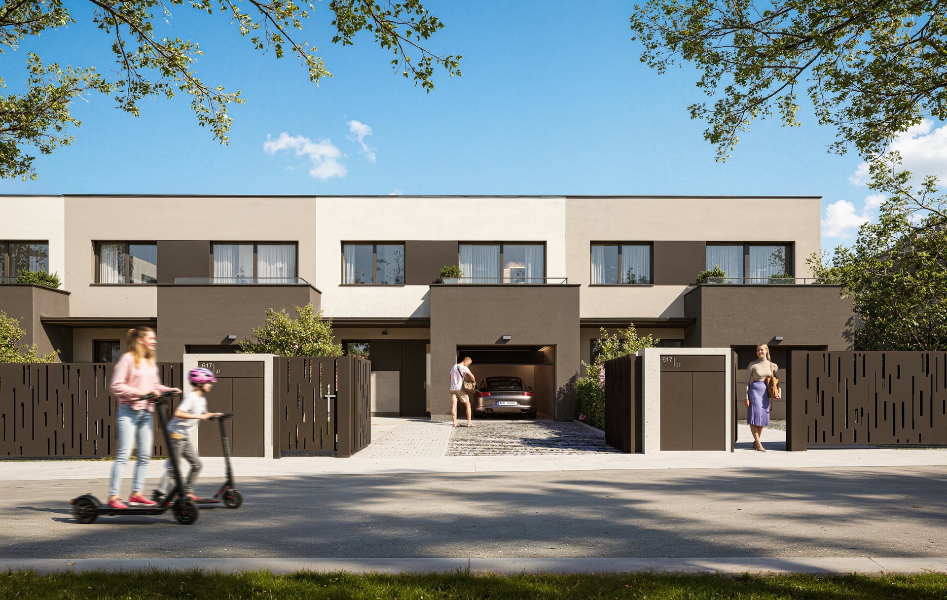 Rodinné domy v projektu Viladomy Pitkovice představují nadstandardní rodinné bydlení s důrazem na soukromí, komfort a kvalitní architekturu. Nadčasové řešení, velkoformátová dřevěná okna a pečlivě zvolené materiály vytvářejí elegantní a prosvětlený prostor s přirozeným propojením na terasu a soukromou zahradu, kterou doplňuje designové oplocení se vstupní bránou.