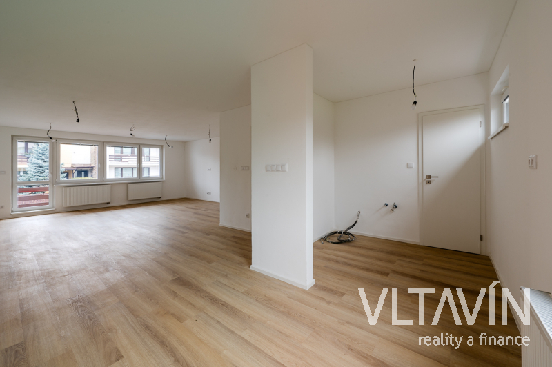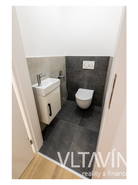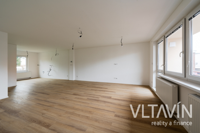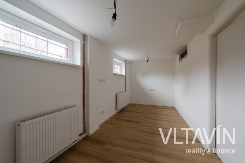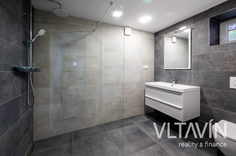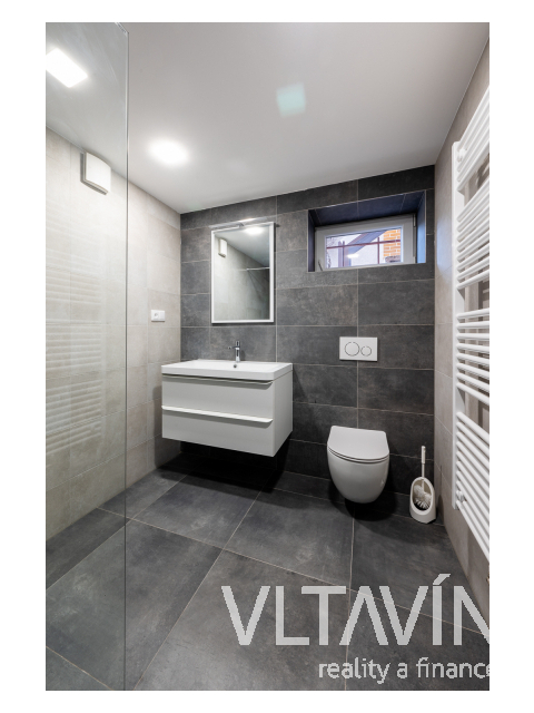 Na podlahách vinyl nebo velkoformátová dlažba.