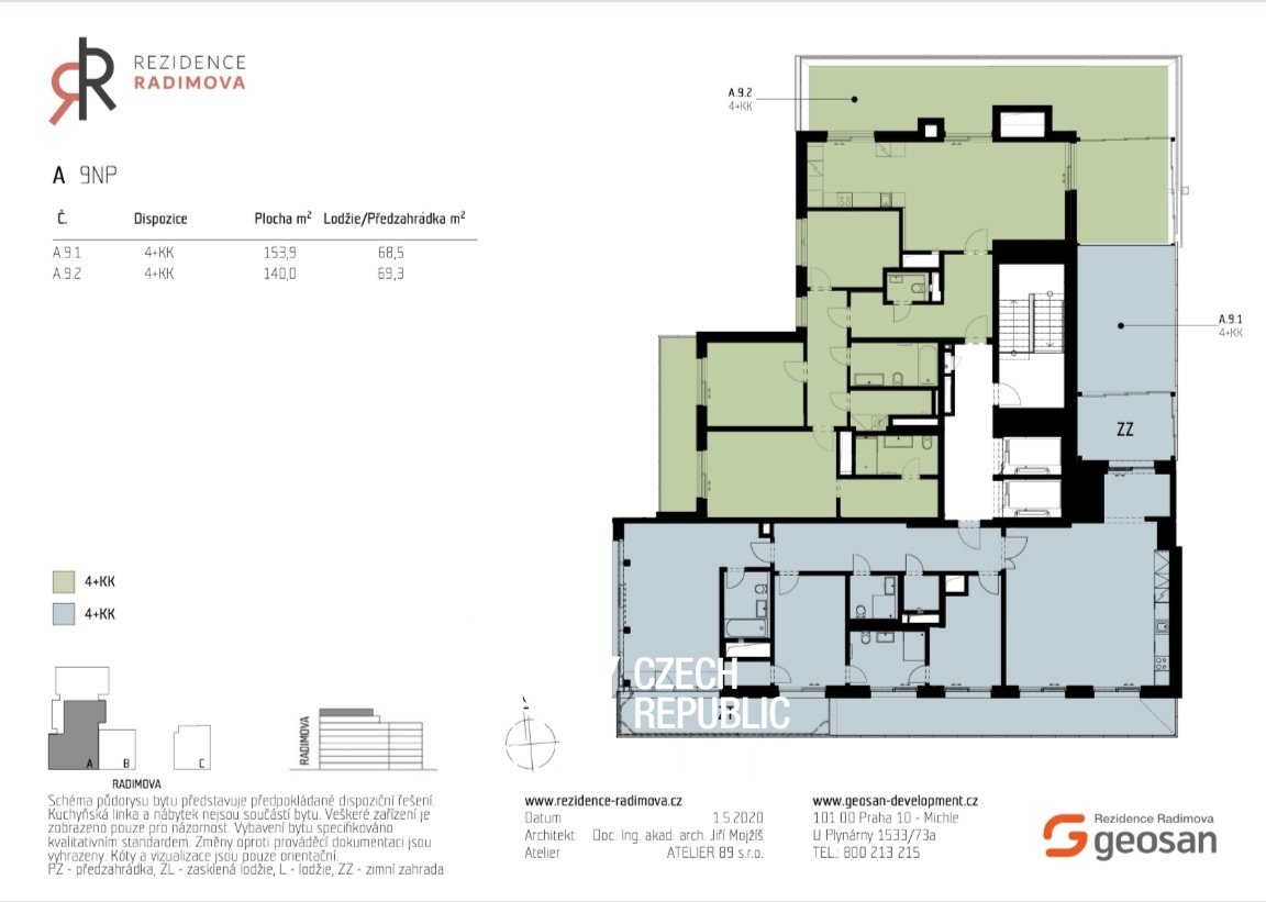 Nabízíme výjimečný penthouse v nejvyšších patrech prestižní Rezidence Radimova v Praze 6 – Břevnově. Jednotka o podlahové ploše 154 m² je v provedení shell & core a je určena k bydlení – máte tedy jedinečnou možnost navrhnout si dispozici, materiály i finální vzhled interiéru přesně podle svých představ, při zachování veškerého komfortu moderního prémiového projektu.