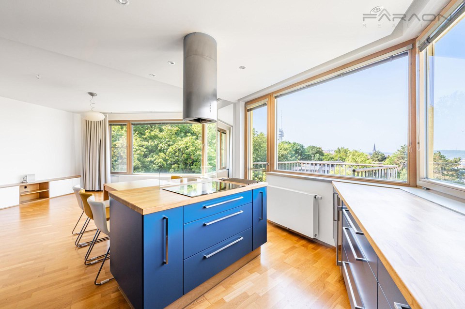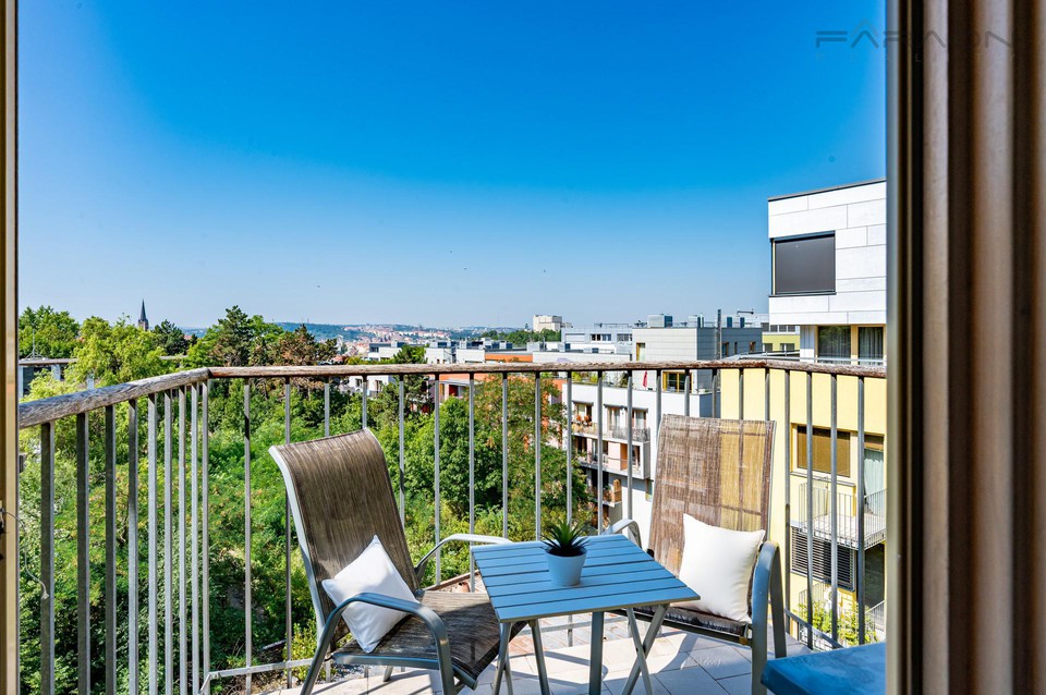 Moderní, mimořádně prostorný a slunný klimatizovaný byt 4+kk (119,5 + dva balkony - 125,8 m²) se dvěma balkony a unikátními výhledy na panorama Prahy, včetně Pražského hradu a Vítkova, stejně jako do zeleně přilehlého parku Parukářka. Nachází se v 5. nadzemním podlaží rezidenčního projektu z roku 2010 s vysokým standardem zabezpečení – 24/7 recepcí, kamerovým systémem a soukromým dětským hřištěm ve vnitrobloku. Rezidenti zde mají zajištěn maximální komfort a pocit bezpečí. Součástí bytu je sklep a parkovací stání v suterénu domu. Klidná rezidenční část pražského Žižkova pak umocňuje příjemnou atmosféru pro moderní a pohodlné bydlení.
