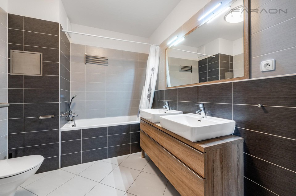 Byt je vybaven kvalitním vestavěným nábytkem na míru, který poskytuje velkorysé množství úložných prostor. Součástí standardu je klimatizace a kuchyňská linka v nadčasovém designu, kompletně osazená vestavěnými spotřebiči značky Electrolux – myčka, indukční varná deska, závěsný odsavač par, parní a mikrovlnná trouba, vinotéka a lednice s mrazákem. V koupelnách je použita velkoformátová dlažba s podlahovým vytápěním. Samozřejmostí jsou hliníkově-dřevěná eurookna s izolačními skly, bezpečnostní vstupní dveře a LED osvětlení ve všech místnostech. K dispozici je také pračka a sušička. Vytápění bytu je řešeno centrální kotelnou v domě. Kupní cena zahrnuje 1 parkovací stání a sklep umístěné v -1. podlaží domu s výtahem.