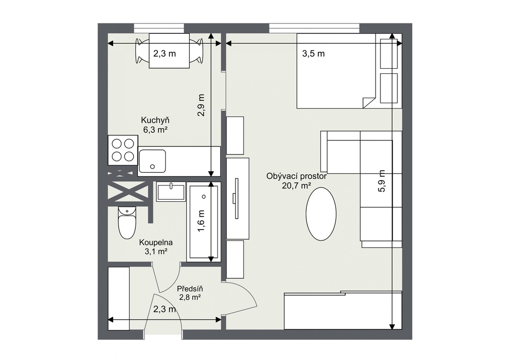 Prodej světlého bytu 1+1, 33m2, ul. Habrová, Praha 3 - Žižkov