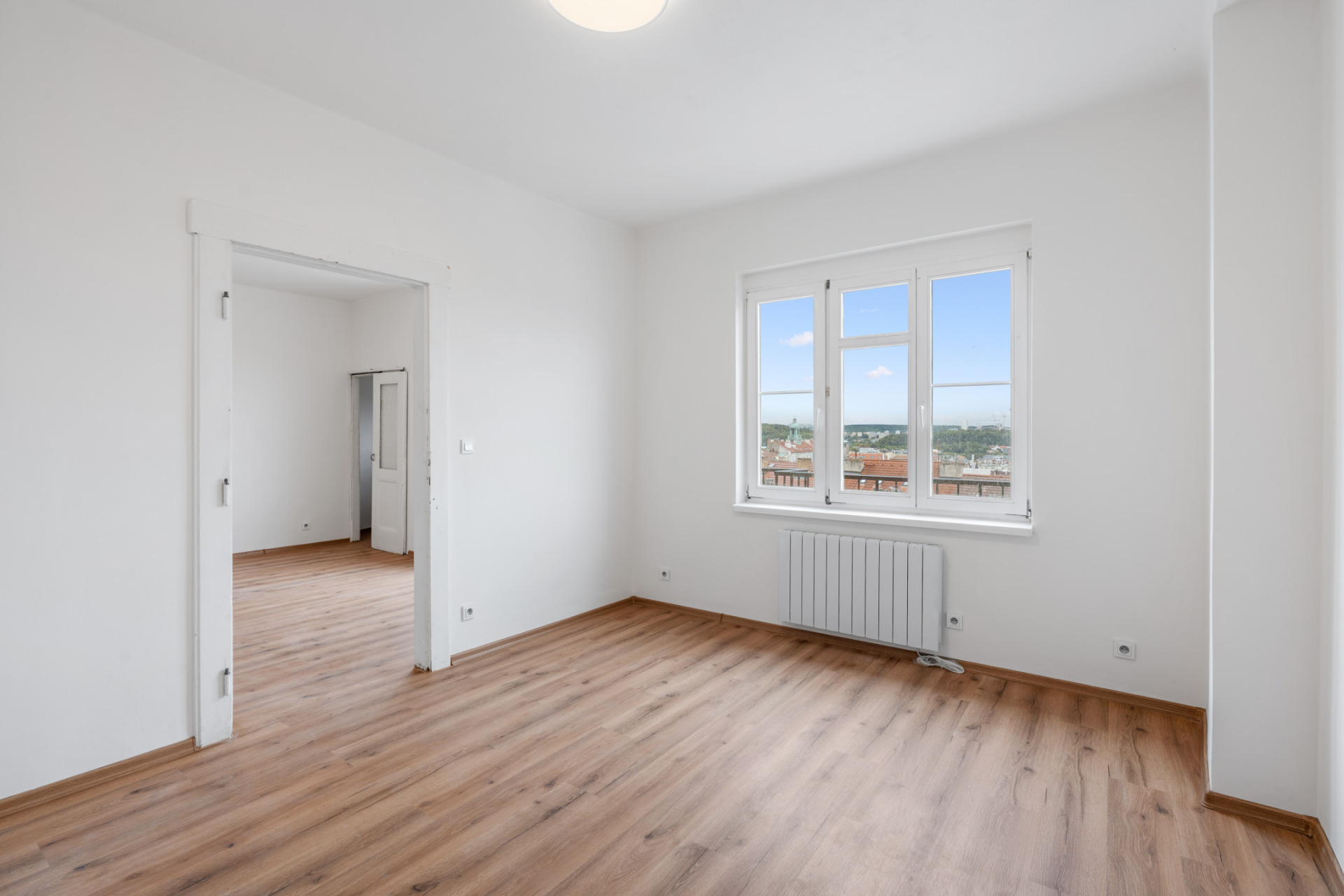 Prodej světlého bytu 2+kk, 45m² s terasou a výhledem na Prahu