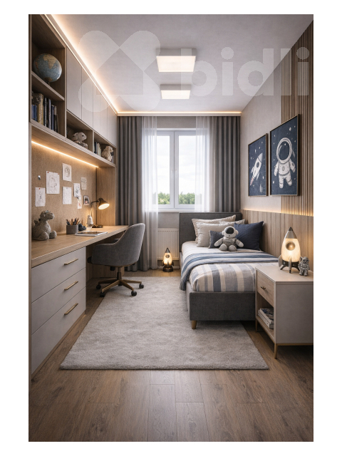 Byt poskytuje dostatek prostoru pro pohodlné rodinné bydlení i práci z domova. Promyšlená dispozice zajišťuje soukromí jednotlivých členů domácnosti i prostor pro společné chvíle.