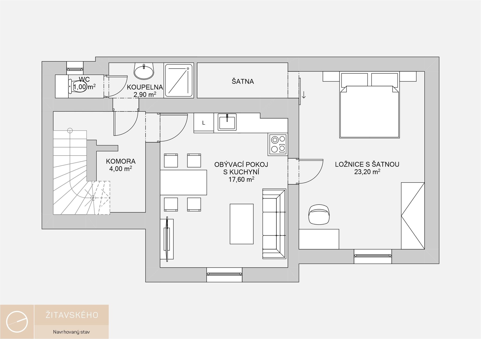 | Dispozice/podlahová plocha: | 2+kk/48 m² |