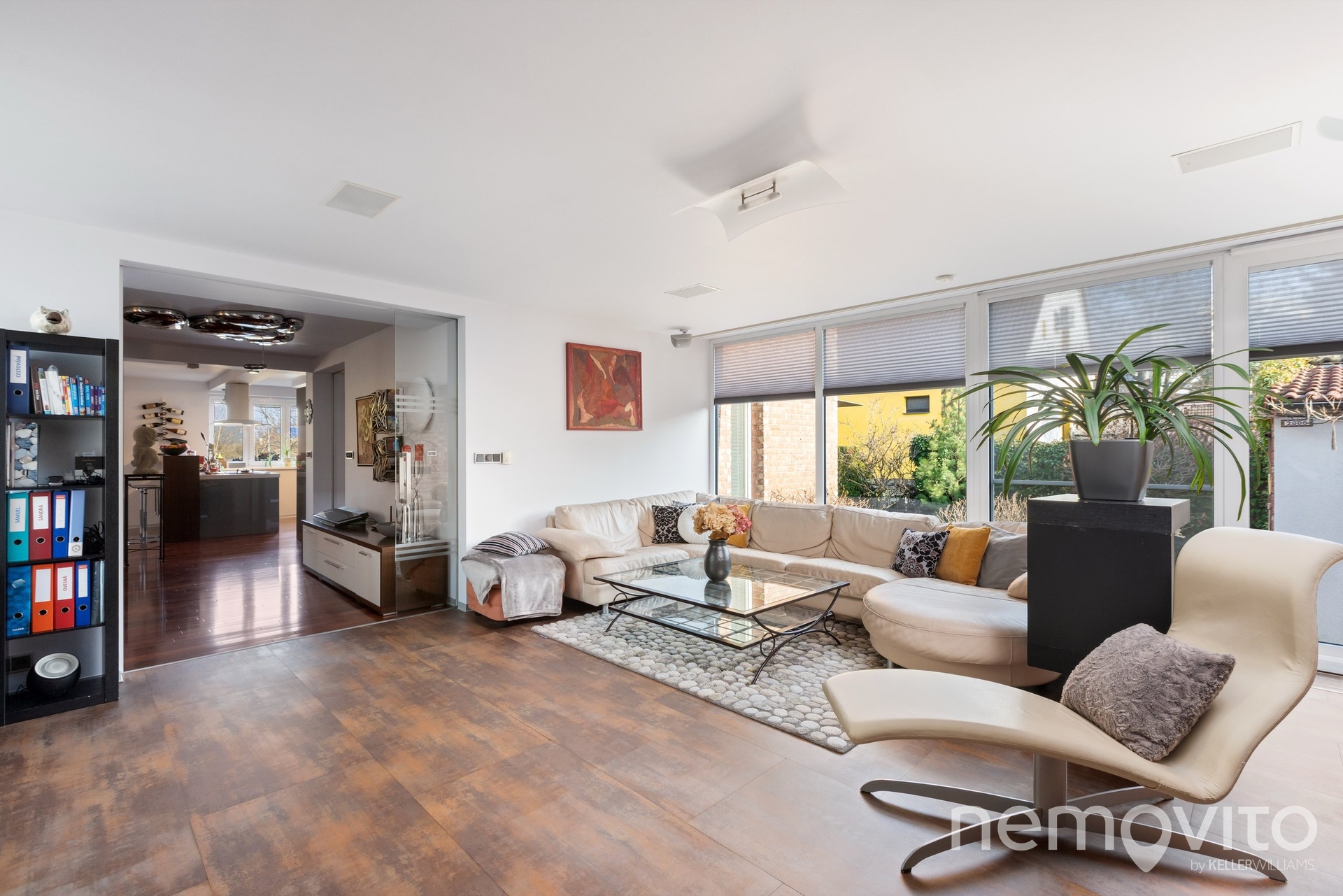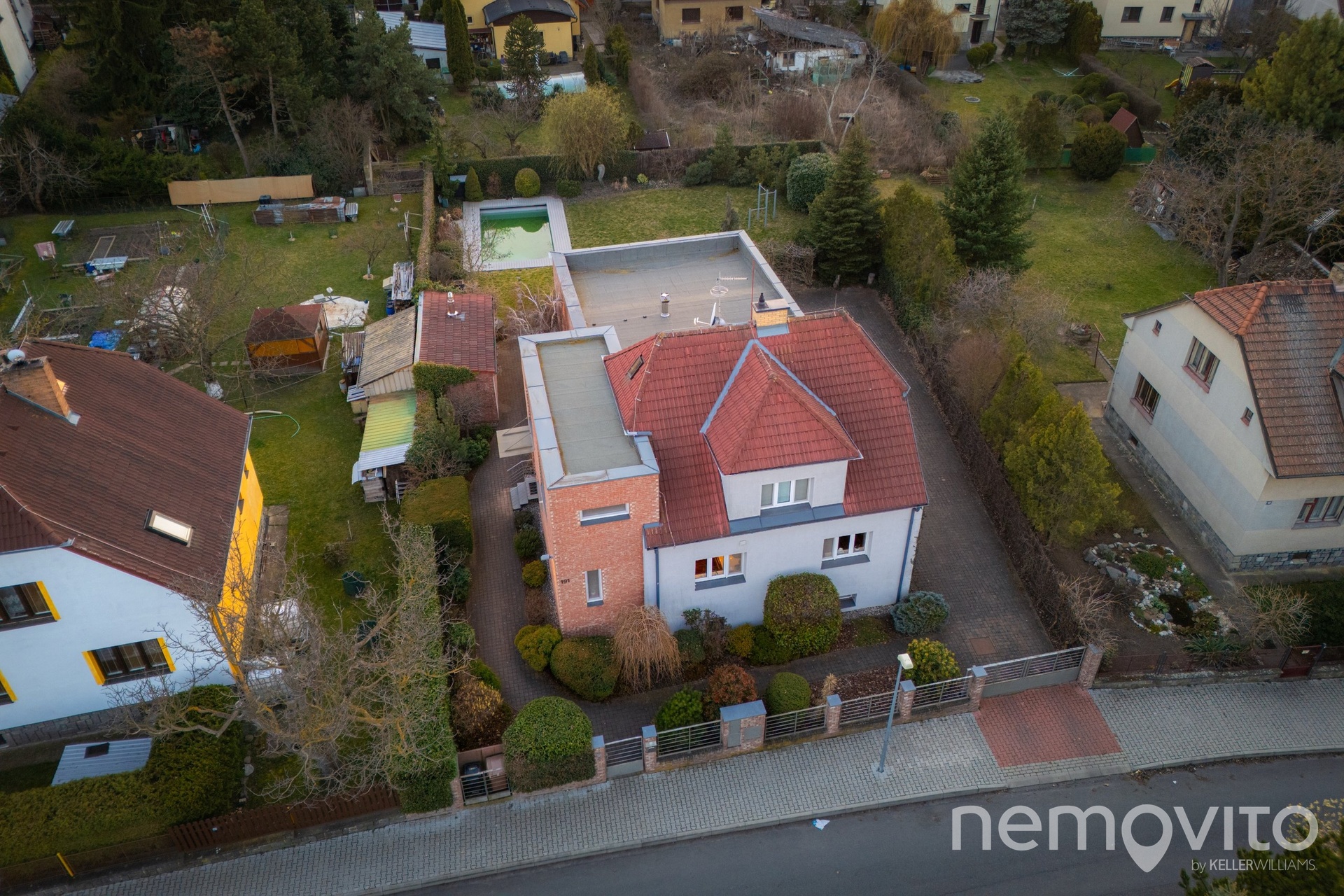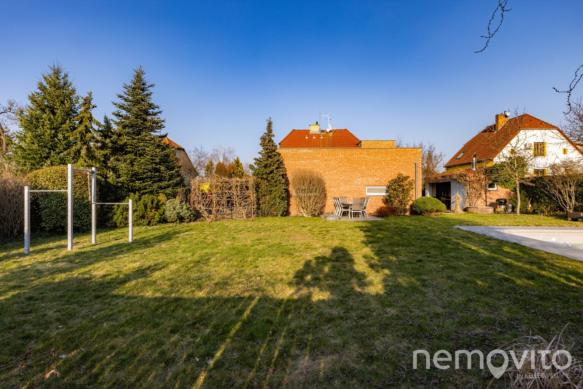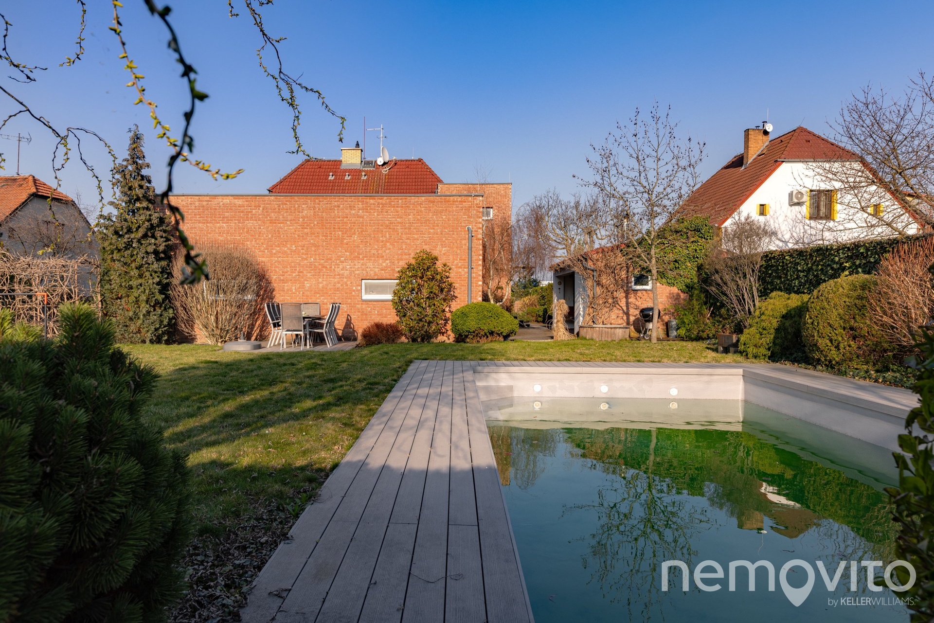 Velký dům 7+1 s plochou přes 300 m2, který z ulice dokonale klame tělem. Nenápadný, přesto však s hromadou místa a komfortu. Dům má k dispozici velký suterén se saunou, rozměrnou garáž, příjemný pozemek v soukromí, bazén a hned dva obývací pokoje se společenskou zónou o ploše 95 m2. Rekonstrukcí a přístavbou prošel v letech 2008 - 2013 a je v perfektně udržovaném stavu.