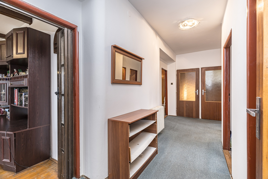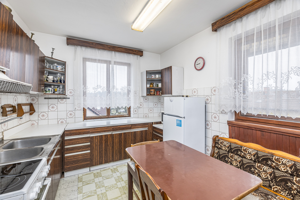Ve výhradním zastoupení majitelů uvádíme do nabídky k prodeji vícegenerační rodinný dům s pozemkem nacházející se v atraktivní části Prahy - Újezd u Průhonic. Nemovitost je umístěna na konci klidné ulice, v zástavbě rodinných domů, v blízkosti přírody, což zaručuje klid, soukromí a příjemné bydlení. Dům disponuje dvěmi samostatnými bytovými jednotkami, rozsáhlými sklepními prostory s dvougaráží a velkou půdou. Každá jednotka má vlastní vstup, což zajišťuje maximální soukromí. Obě jednotky mají dispozici 3+1: obývací pokoj, dvě neprůchozí ložnice, kuchyně, koupelna, samostatná toaleta, předsíň, 2 komory a terasa. Jednotka v přízemí je po rekonstrukci, jednotka v patře je v původním, udržovaném stavu, připravena k úpravám dle vkusu nového majitele. Součástí domu jsou dvě prostorné garáže a rozsáhlé sklepní prostory / 6 místností/ vhodné pro skladování, technické zázemí, lze zde vybudovat saunu, posilovnu, nebo dílnu pro domácí kutilství a nebo využít prostory pro podnikání. Dvougařáž o velikosti 40m2 je přístupná vjezdem přímo z ulice. Velkým benefitem je také rozlehlá půda 70m2, která nabízí potenciál pro vestavbu další bytové jednotky nebo rozšíření obytné plochy dle vlastních představ. Dům je napojen na obecní vodovod, elektřinu, a kanalizaci, vytápěný kotlem na pelety s rozvodem do radiátorů. Na pozemku je také kopaná studna. Zahrada je rovinatá, zatravněná a snadno udržovatelná, ideální pro relaxaci, rodinné posezení či volnočasové aktivity. Na zahradě je kopaná studna. Lokalita patří dlouhodobě mezi velmi vyhledávaná místa pro bydlení. Výborná dostupnost do Prahy i kompletní občanská vybavenost v okolí v kombinaci s dostatkem zeleně zvyšují atraktivitu tohoto místa. Nemovitost nabízí nejen kvalitní bydlení, pro rodinu či vícegenerační bydlení, ale také zajímavý investiční záměr pro investora, který dokáže využít potenciál nemovitosti rozšířením na 3 bytové jednotky se zahradou a kvalitním zázemím. PENB je ve zpracování, proto uvádíme energetickou třídu "G". Nemovitost vám rádi představíme na osobní prohlídce.