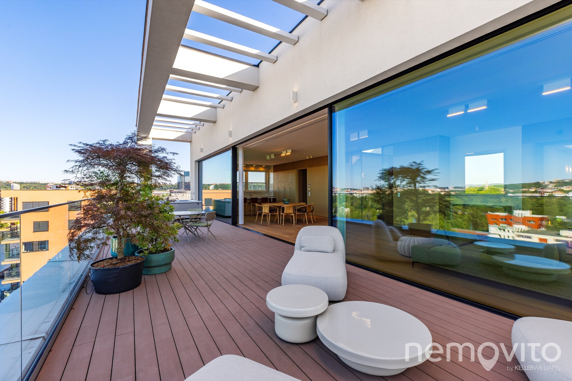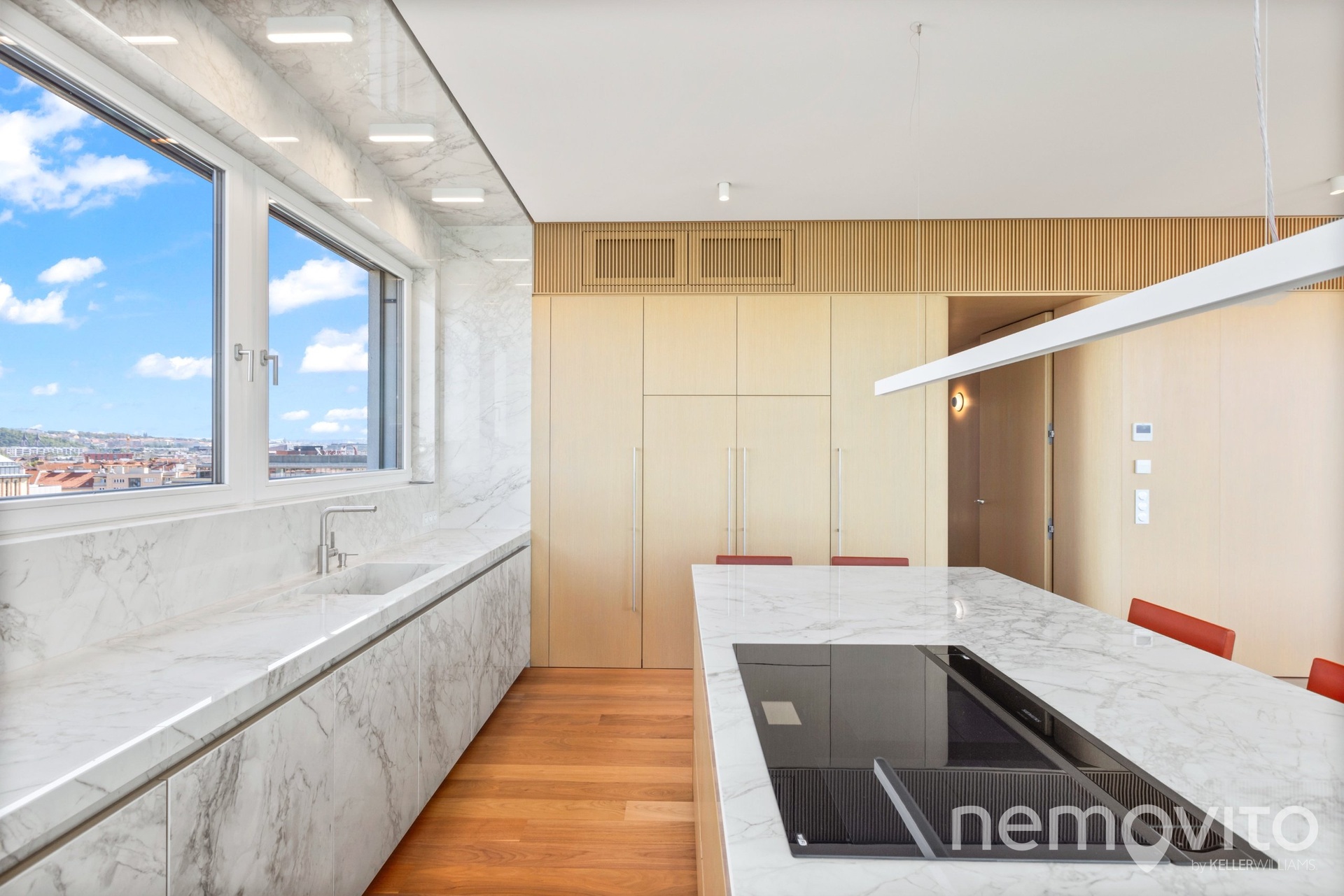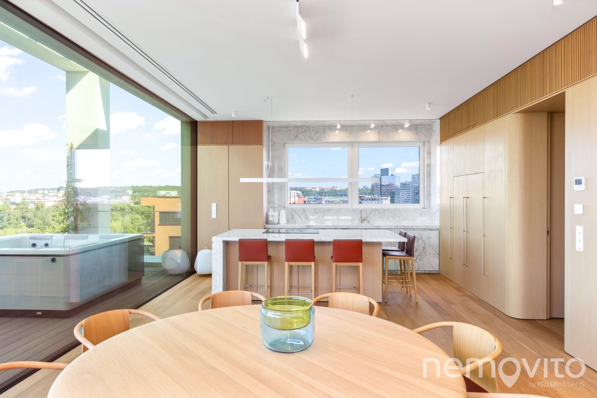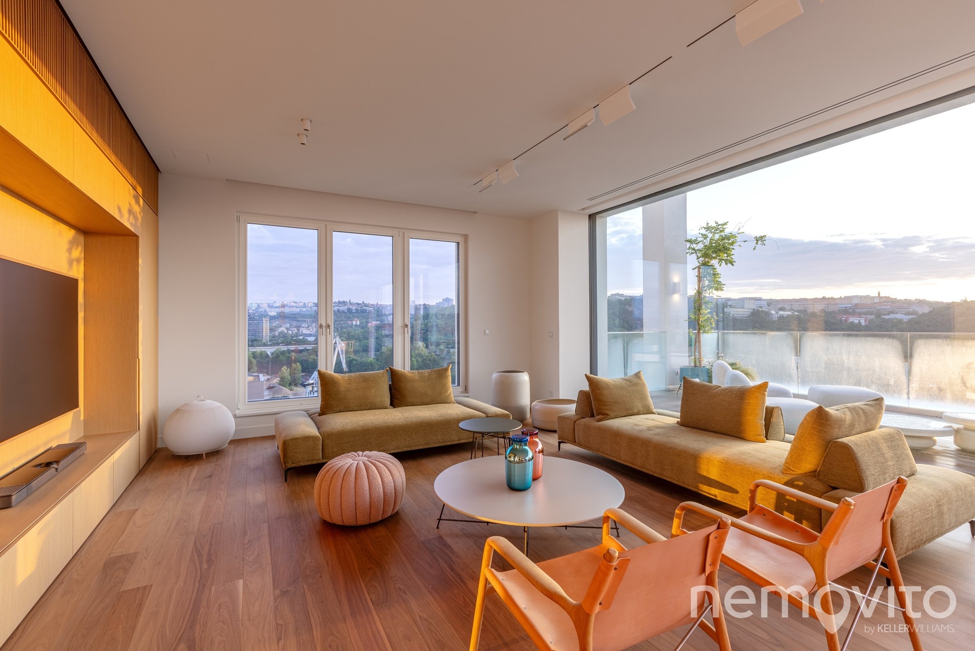 The price also includes complete equipment and furniture, including all joinery elements, the above-standard apartment was designed at a cost of tens of millions CZK. The wooden floors are heated, thermal comfort is provided by air conditioning and recuperation, and an interesting element is also a 17-meter-long window to the terrace, which opens with its own motor. The unique apartment is the responsibility of the development company Daramis. If you are interested in more information about the listing (more photos, exact specifications, floor plan), I will be happy to send you a link to a separate website for the apartment.
