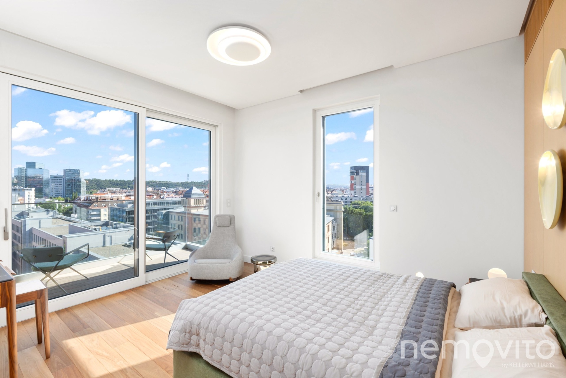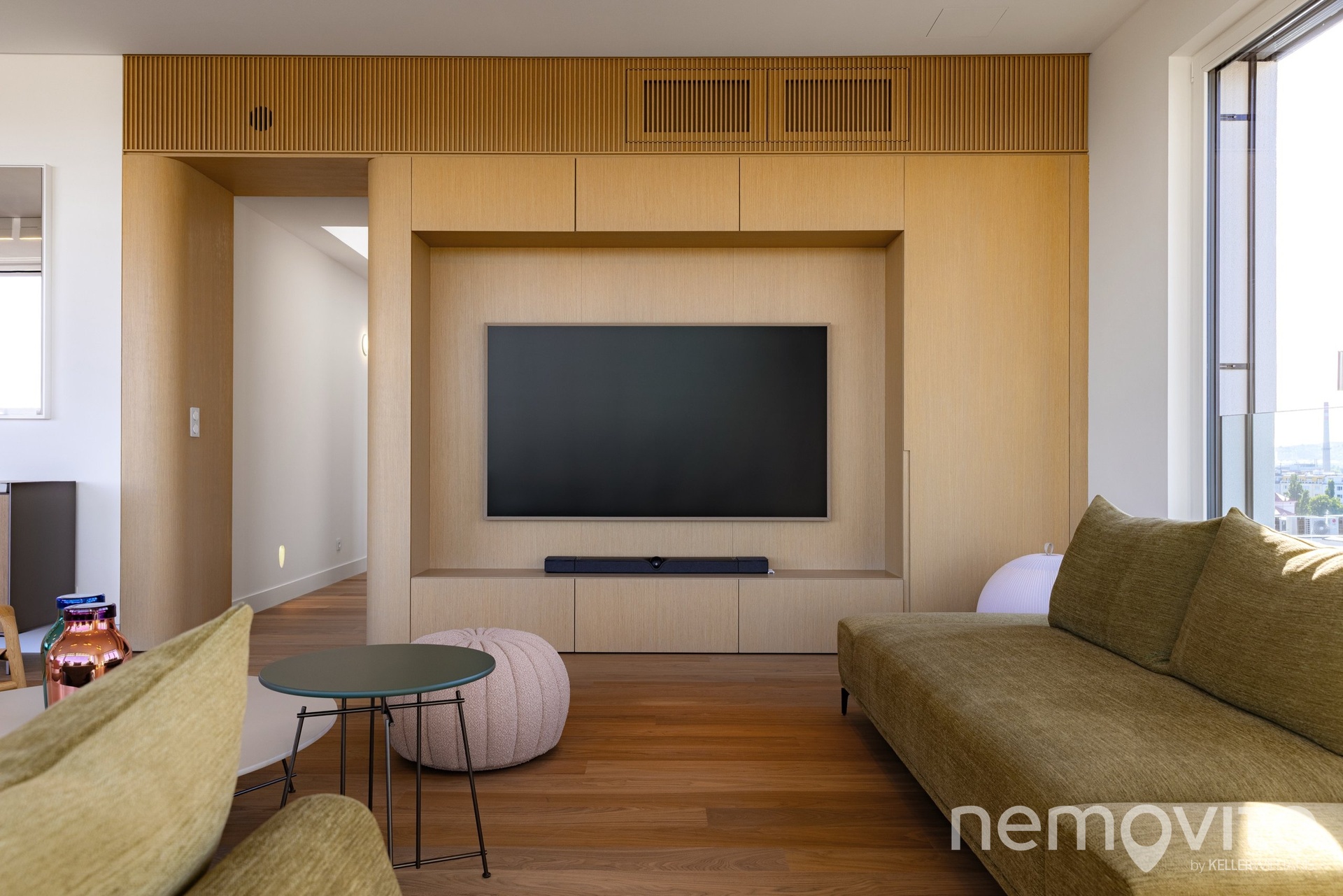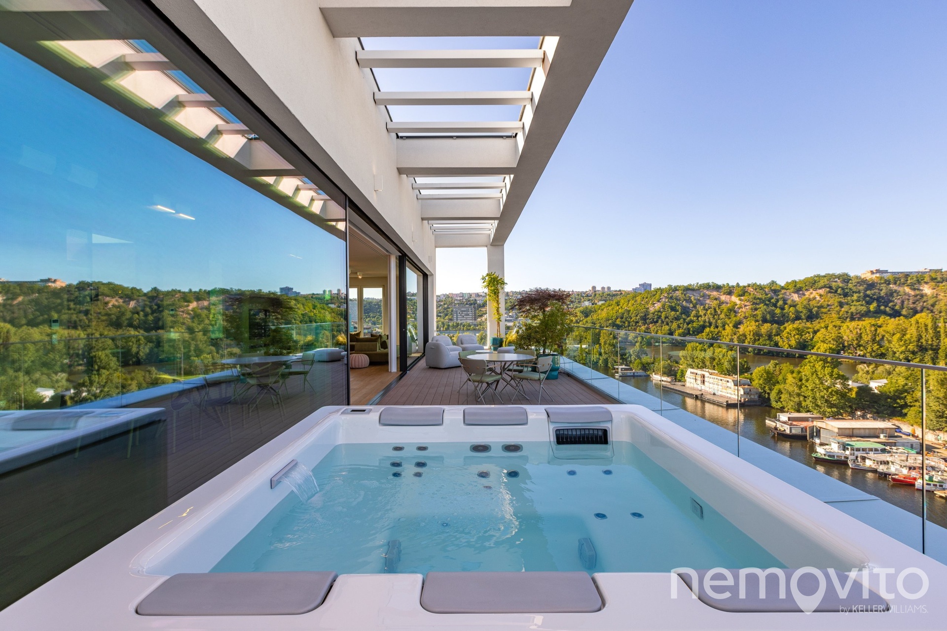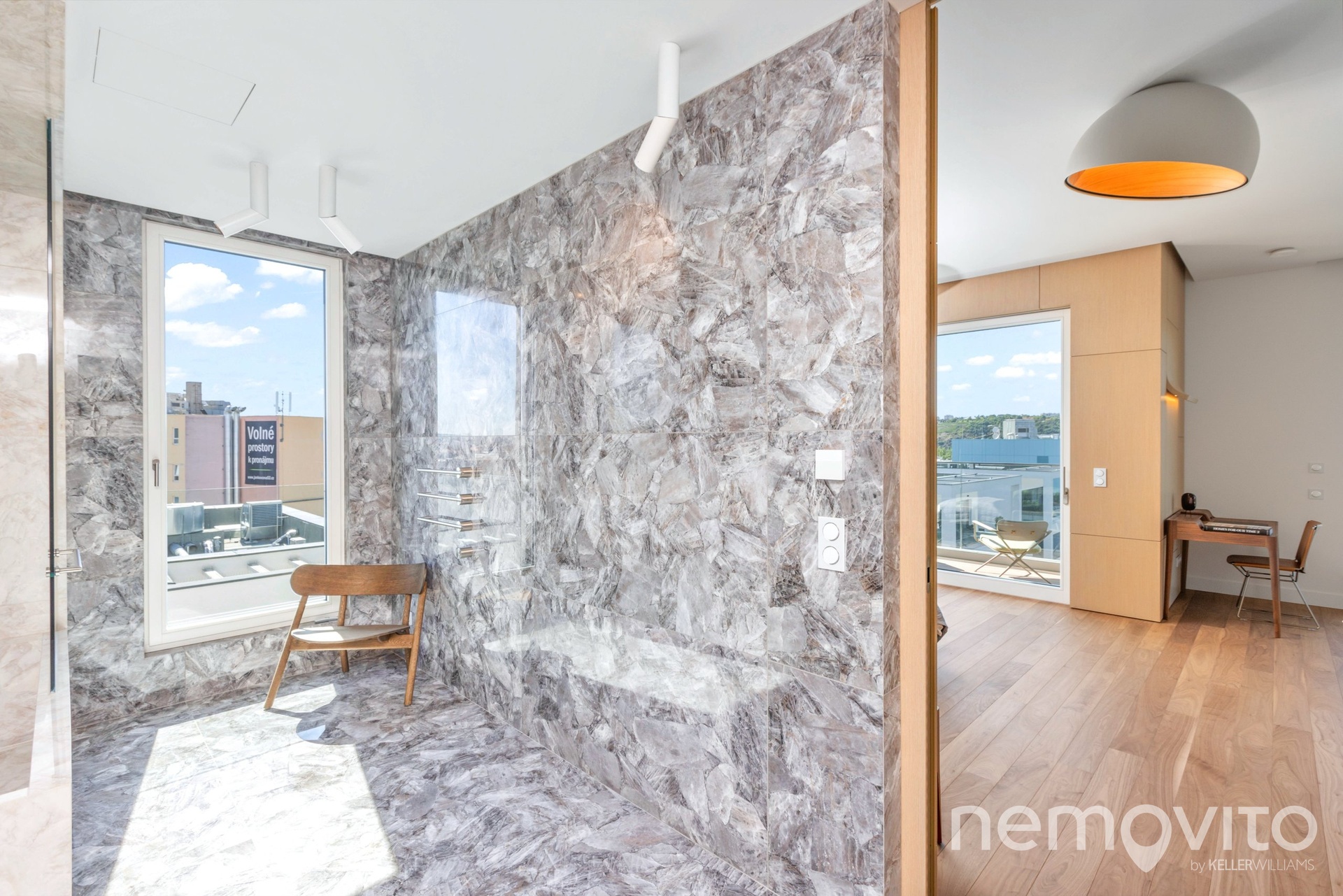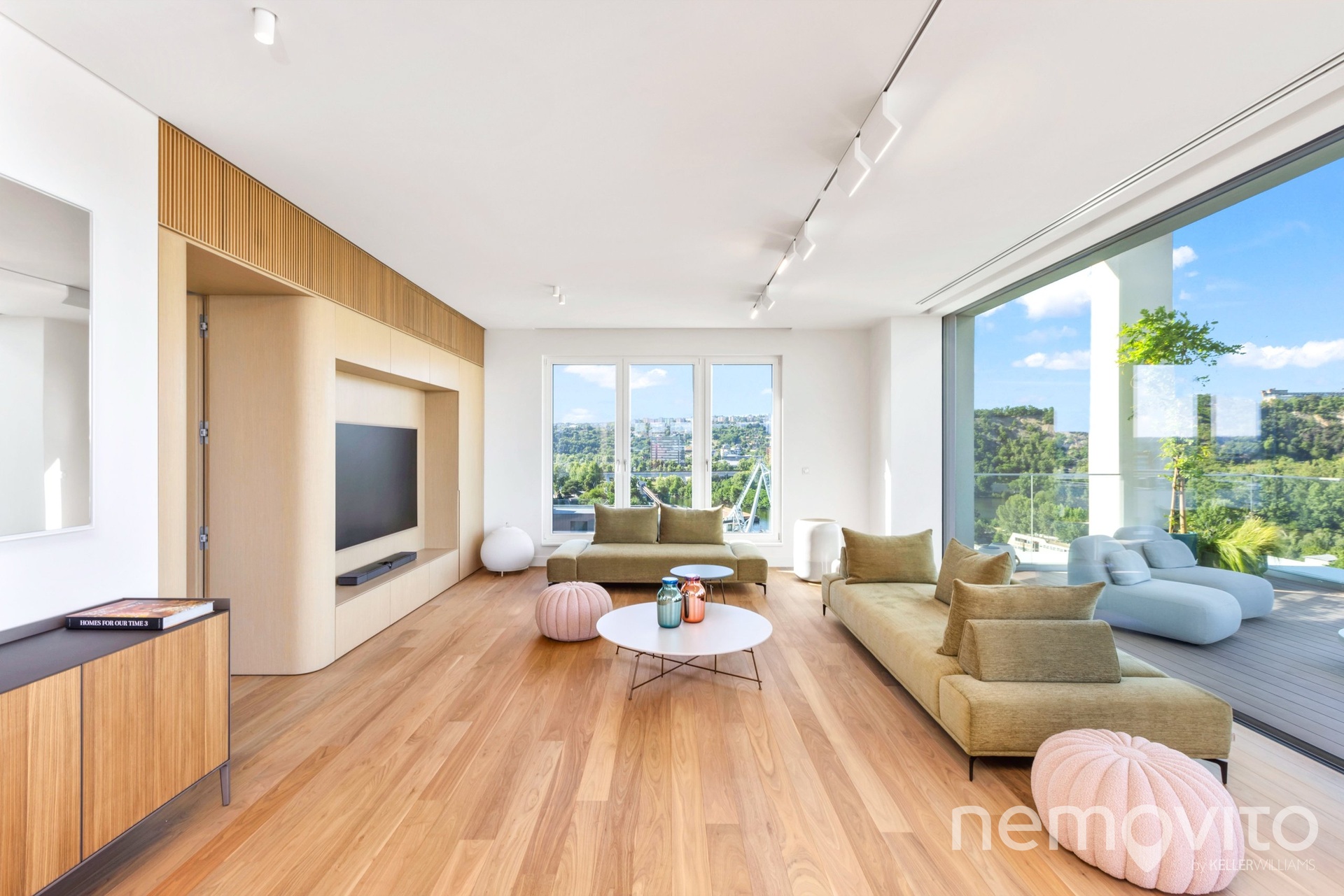 The price also includes complete equipment and furniture, including all joinery elements, the above-standard apartment was designed at a cost of tens of millions CZK. The wooden floors are heated, thermal comfort is provided by air conditioning and recuperation, and an interesting element is also a 17-meter-long window to the terrace, which opens with its own motor. The unique apartment is the responsibility of the development company Daramis. If you are interested in more information about the listing (more photos, exact specifications, floor plan), I will be happy to send you a link to a separate website for the apartment.