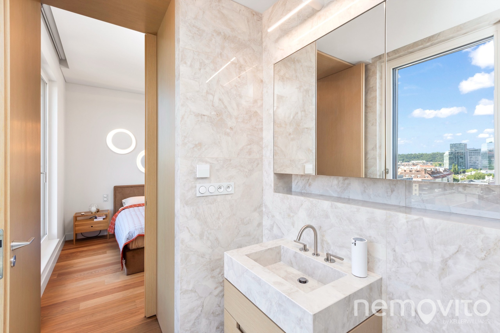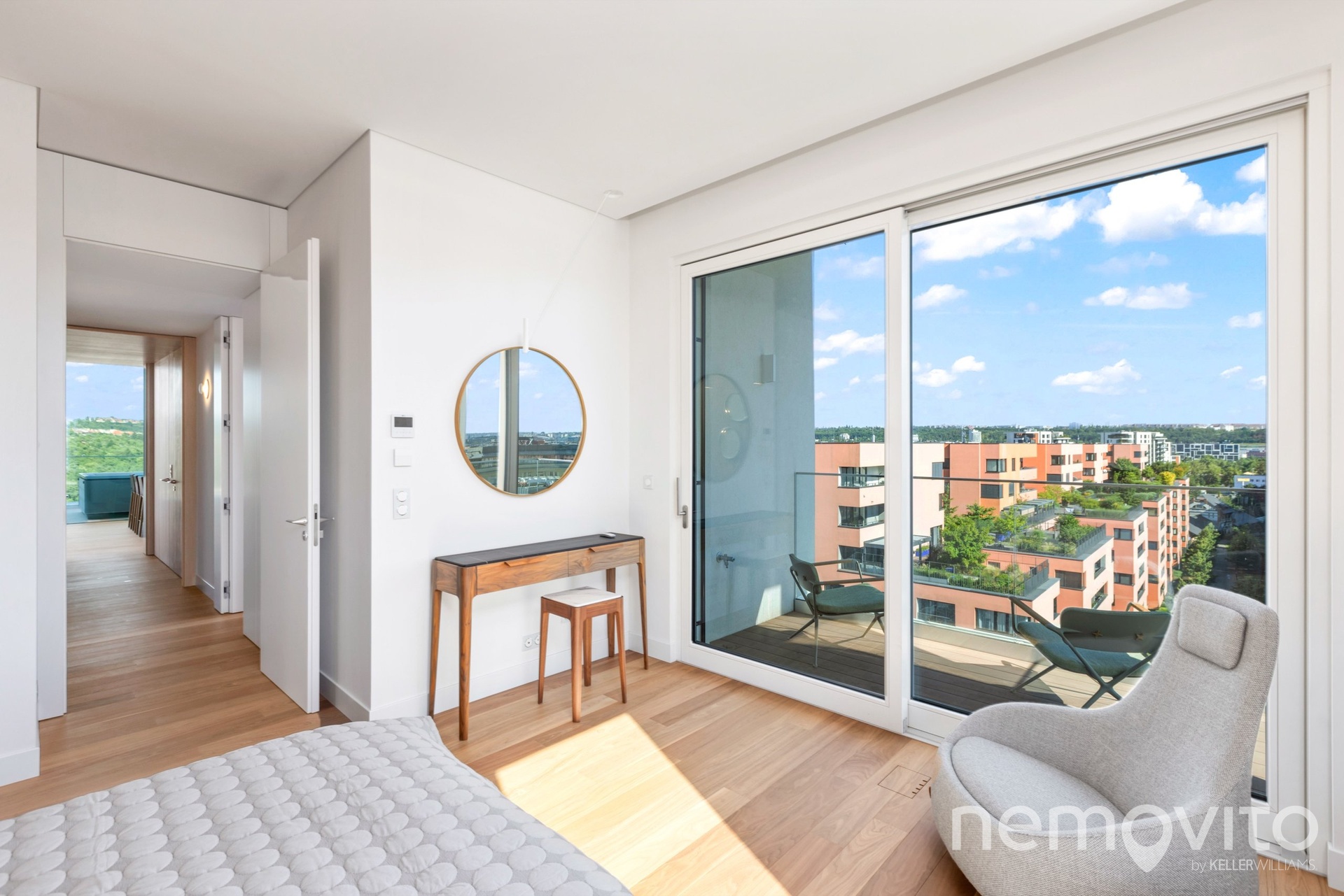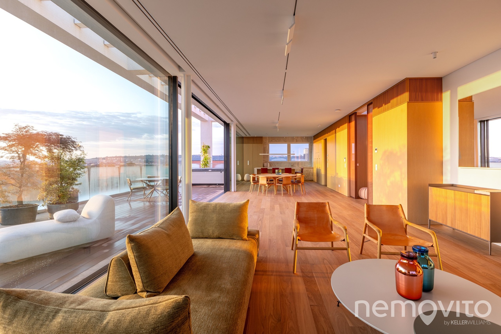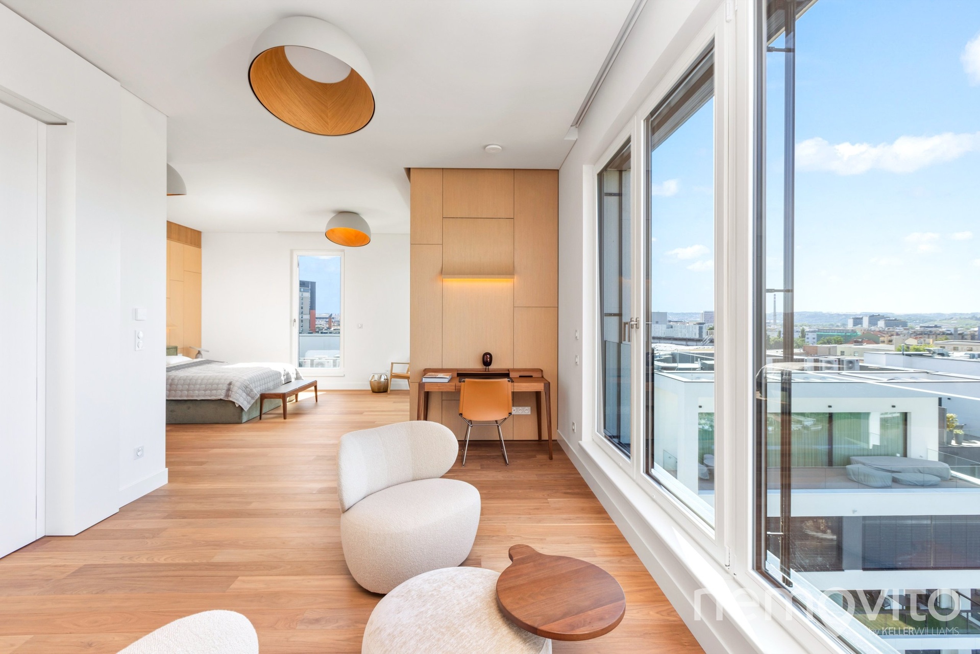 The price also includes complete equipment and furniture, including all joinery elements, the above-standard apartment was designed at a cost of tens of millions CZK. The wooden floors are heated, thermal comfort is provided by air conditioning and recuperation, and an interesting element is also a 17-meter-long window to the terrace, which opens with its own motor. The unique apartment is the responsibility of the development company Daramis. If you are interested in more information about the listing (more photos, exact specifications, floor plan), I will be happy to send you a link to a separate website for the apartment.