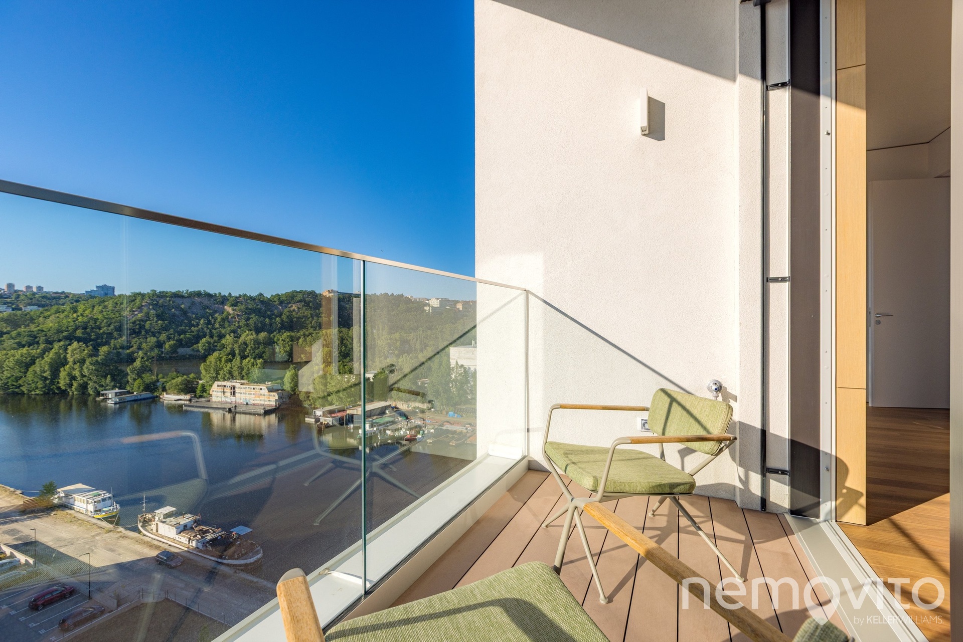 Fully furnished and freshly built penthouse with an area of over 250 sqm, offering unique panoramic views from the top floor of the Prague Marina Nova building. The apartment includes a 74 sqm terrace, two balconies, two storage rooms, two separate garages and two garage parking spaces. The apartment is air-conditioned, equipped with underfloor heating, recuperation and represents the pinnacle of current Czech housing construction.
