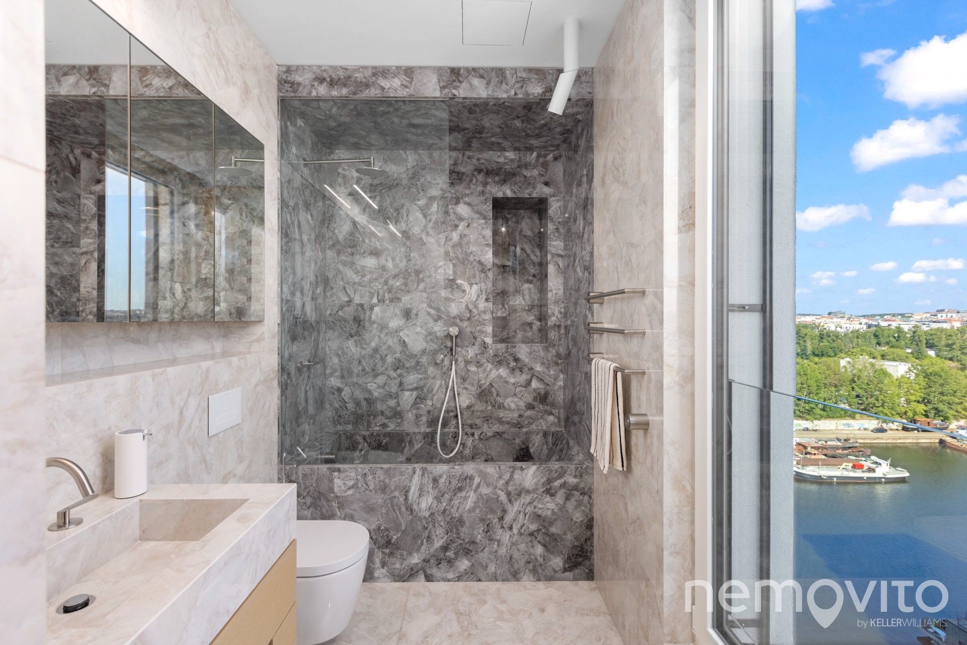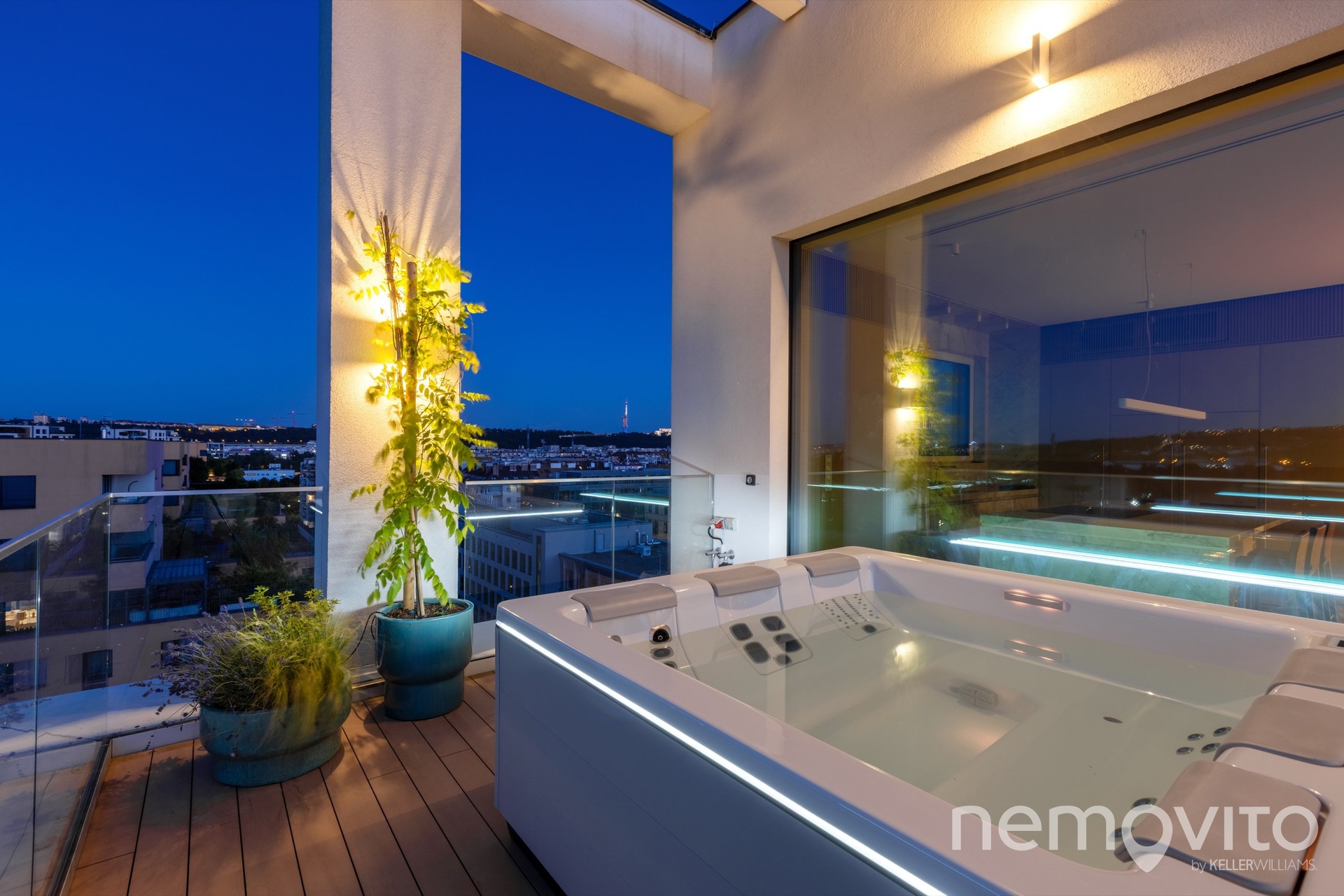 Kompletně vybavený a nově dokončený penthouse s plochou přes 250 m2, který nabízí jedinečné panoramatické výhledy z nejvyššího podlaží budovy Prague Marina Nova. K bytu náleží terasa 74 m2, dva balkony, dva sklepy, dvě samostatné garáže a dvě garážová stání. Byt je klimatizovaný, vybavený podlahovým topením, rekuperací a představuje špičku v rámci aktuální české bytové výstavby.