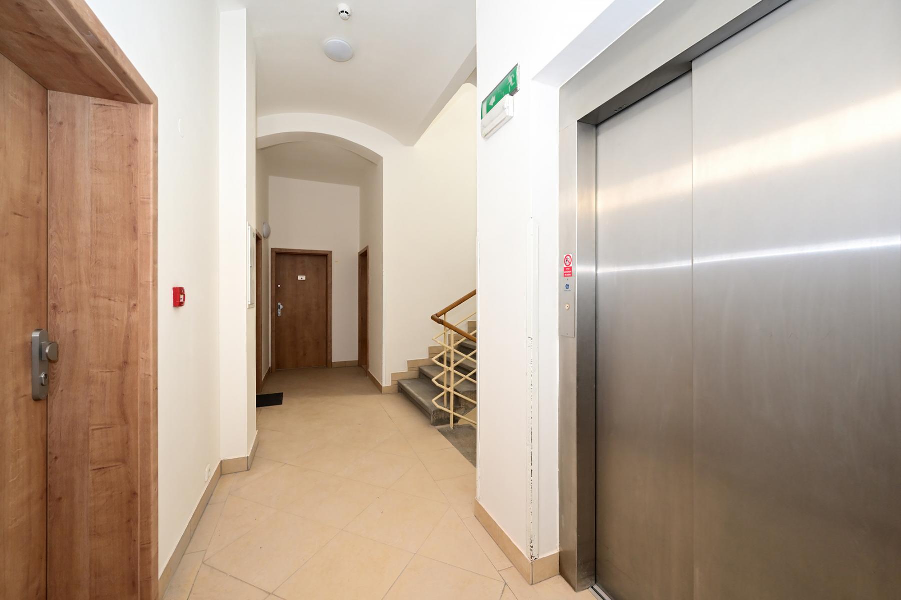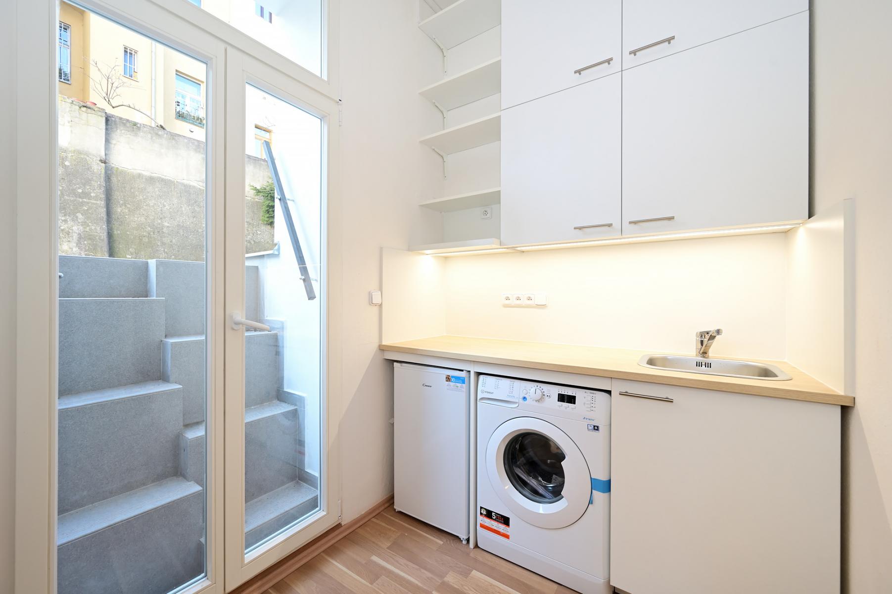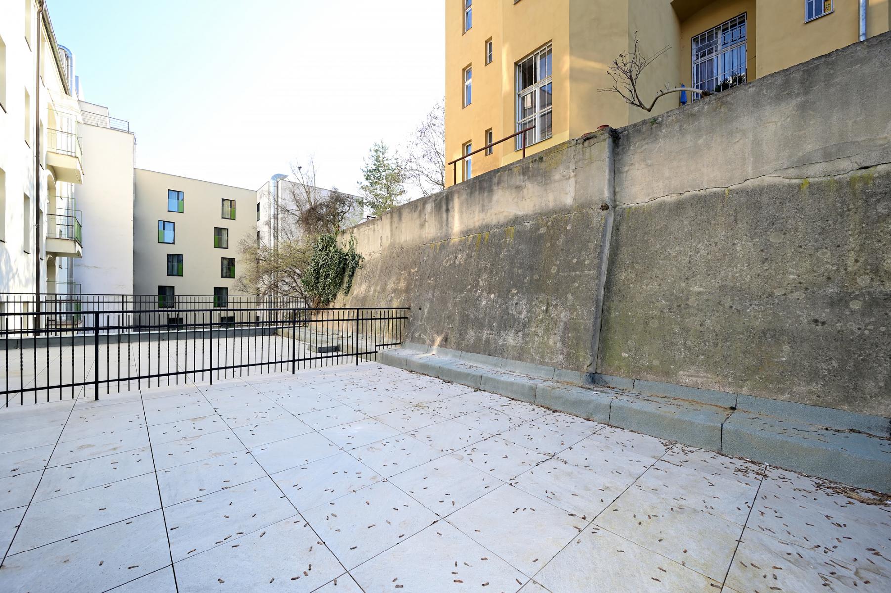 Pronájem nové částečné rekonstrukce bytu 1+kk o velikosti 15 m2 + 44 m2 terasa v domě s výtahem, pár minut pěšky na metro Anděl.