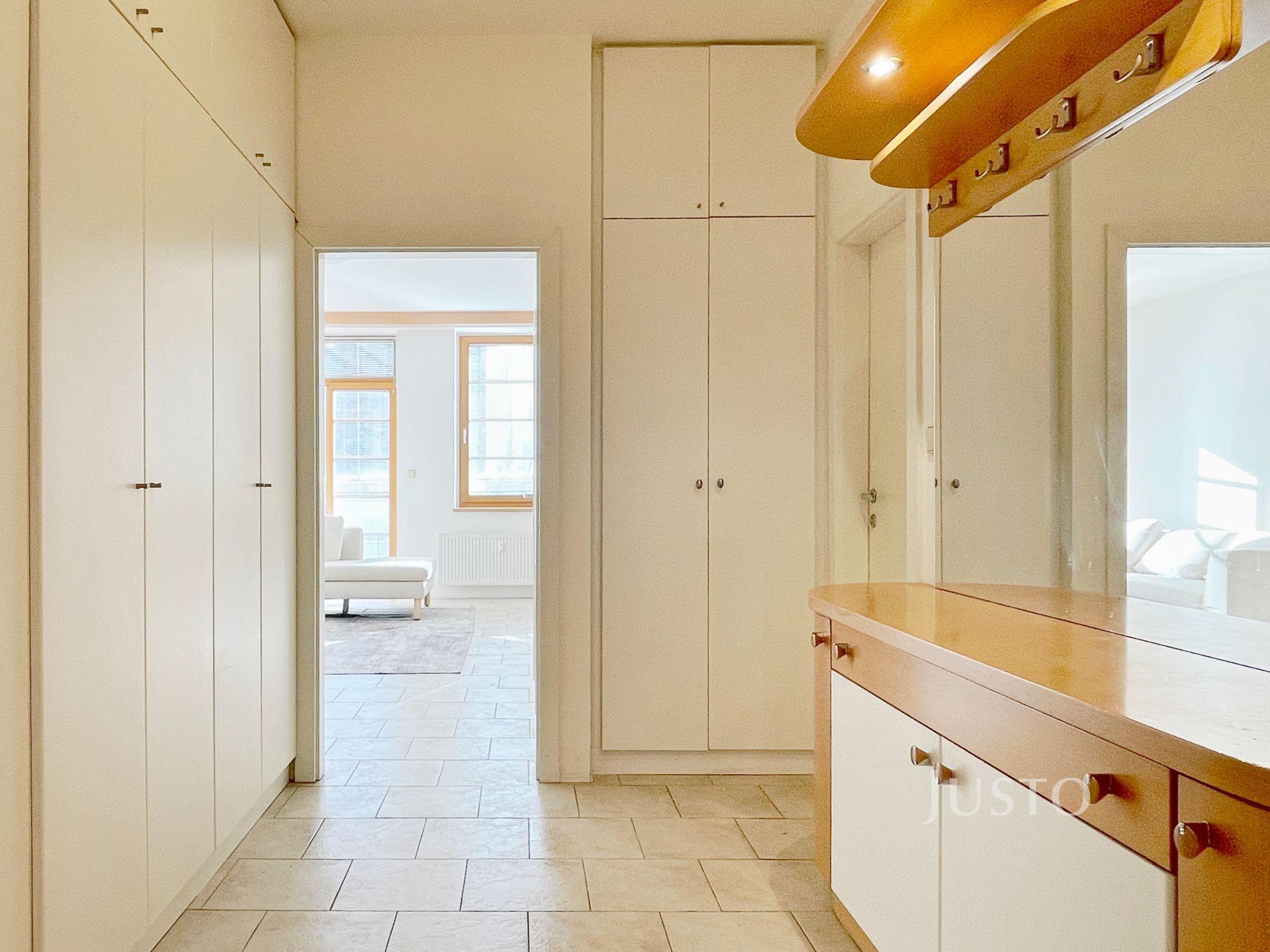 - prostorná chodba s vestavěnými skříněmi a skříňkou s velkým zrcadlem