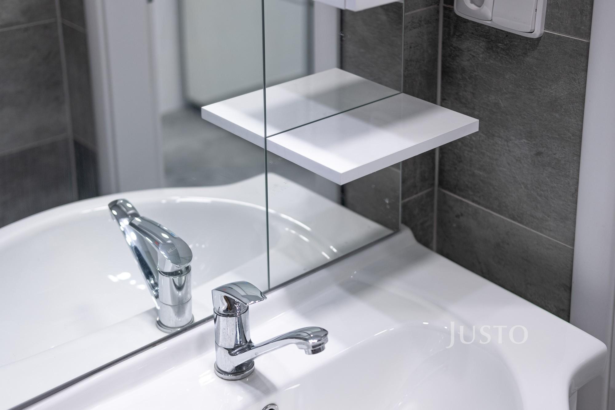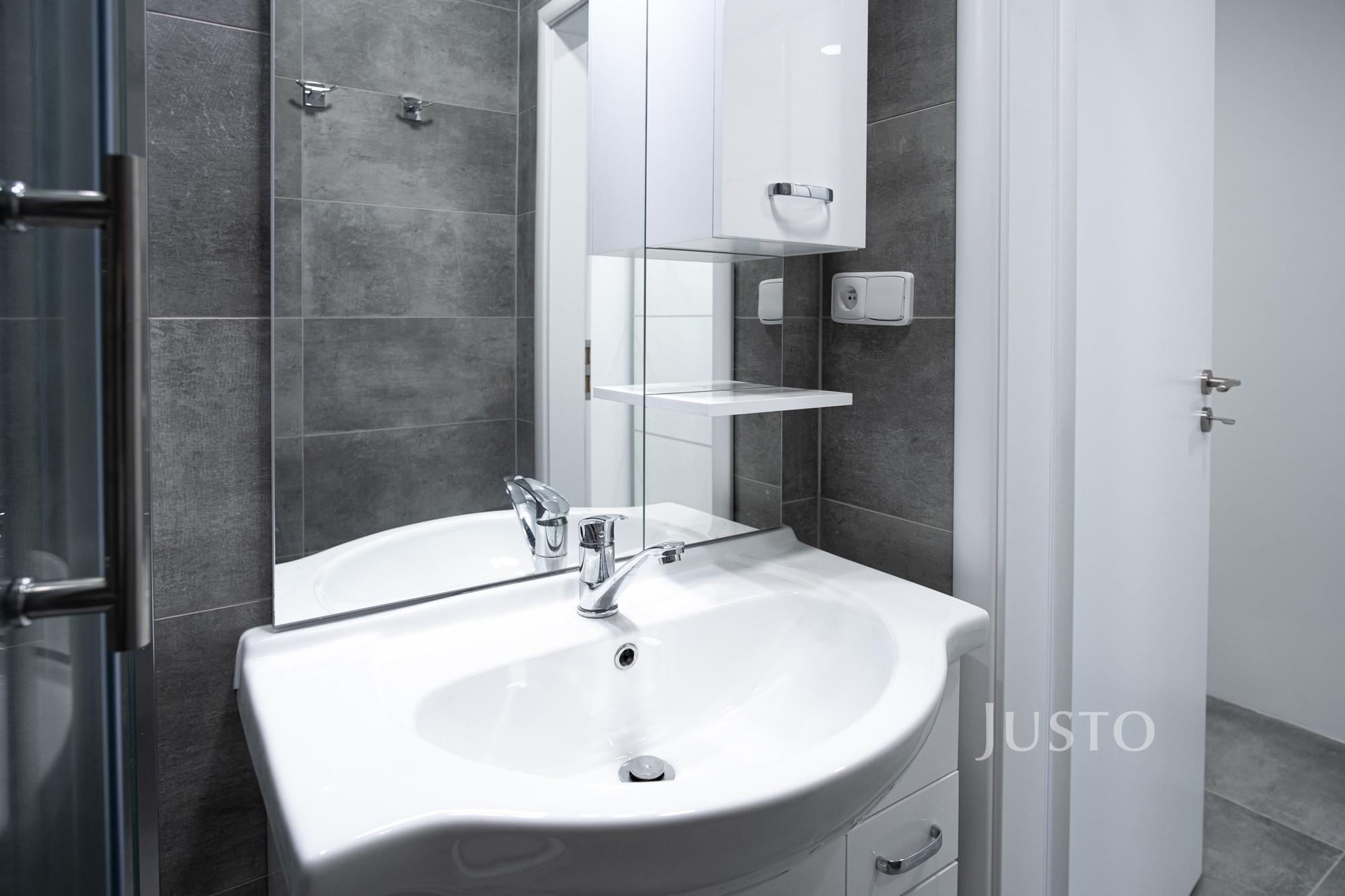 Byt tvoří, předsíň s vestavěnou skříní, obývací pokoj, kuchyň s kuchyňskou linkou vybavenou spotřebiči (lednička, el. sporák, el. trouba, digestoř, pračka), ložnice, koupelna se sprchovým koutem, oddělená toaleta.