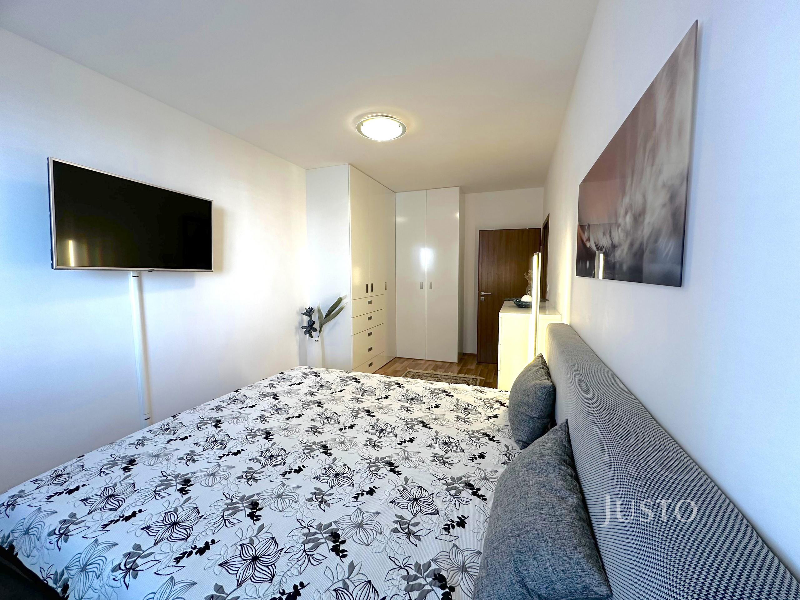 - severně orientovaná prostorná ložnice disponuje velkou manželskou postelí, nočními stolky a vestavěnou skříní a komodou