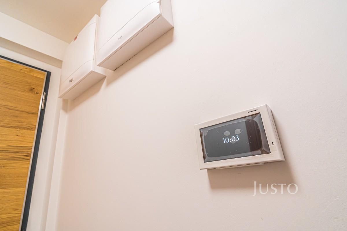 1. Kuchyňská linka s kvalitními spotřebiči (myčka, sklokeramická deska, digestoř, trouba, mikrovlnná trouba, lednice, jídelní stůl a dvě židle).