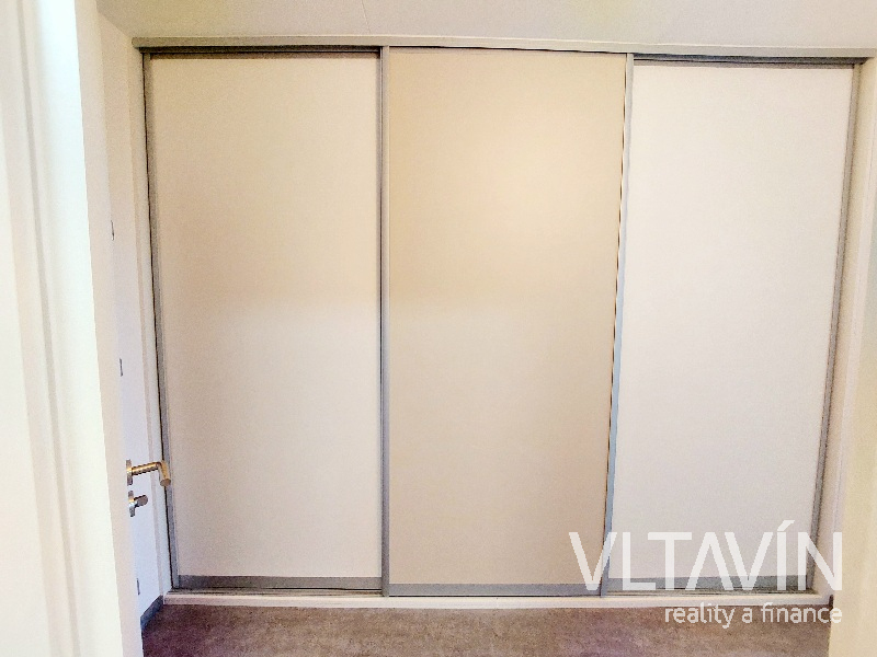 V předsíni bytu je umístěna po celé její délce velká vestavěná skříň s policovým i šatním systémem. Vstupní dveře do bytu jsou bezpečnostní.