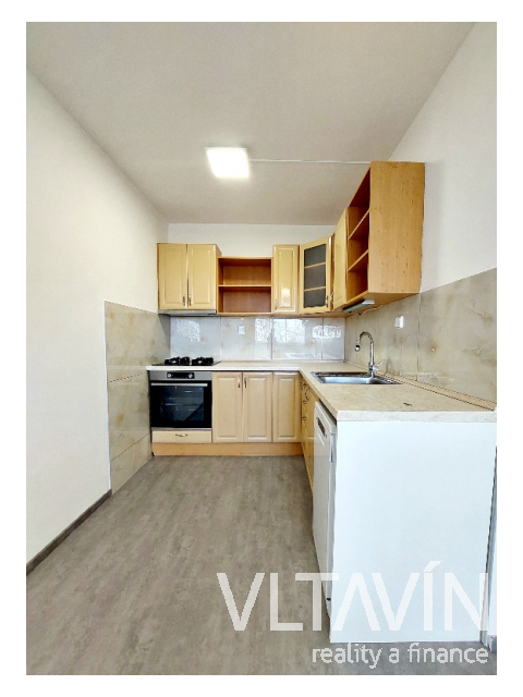 Pokoj s prostorným kuchyňským koutem o výměře 21,7 m2 je vybavený novou kuchyňskou linkou, sporákem, varnou deskou, myčkou, ložnice je vybavena manželskou postelí, lodžie je přístupná z obývacího pokoje.