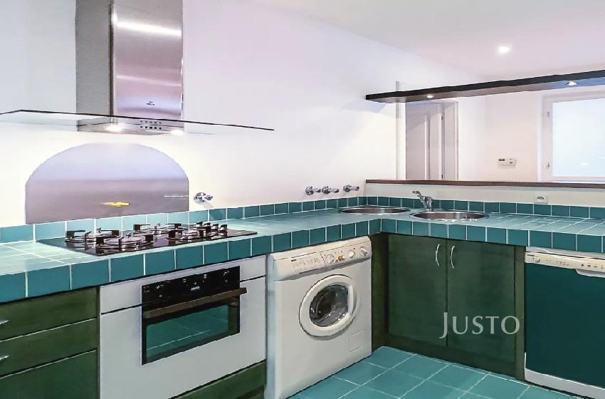 1. podlaží: vchod, obývací pokoj s jídelnou (TV, satelit a DVD), u obývacího pokoje je balkon, plně vybavená kuchyň, ložnice s dvojlůžkem a vestavěnou skříní. V koupelně je sprcha. Byt má dvě komory.