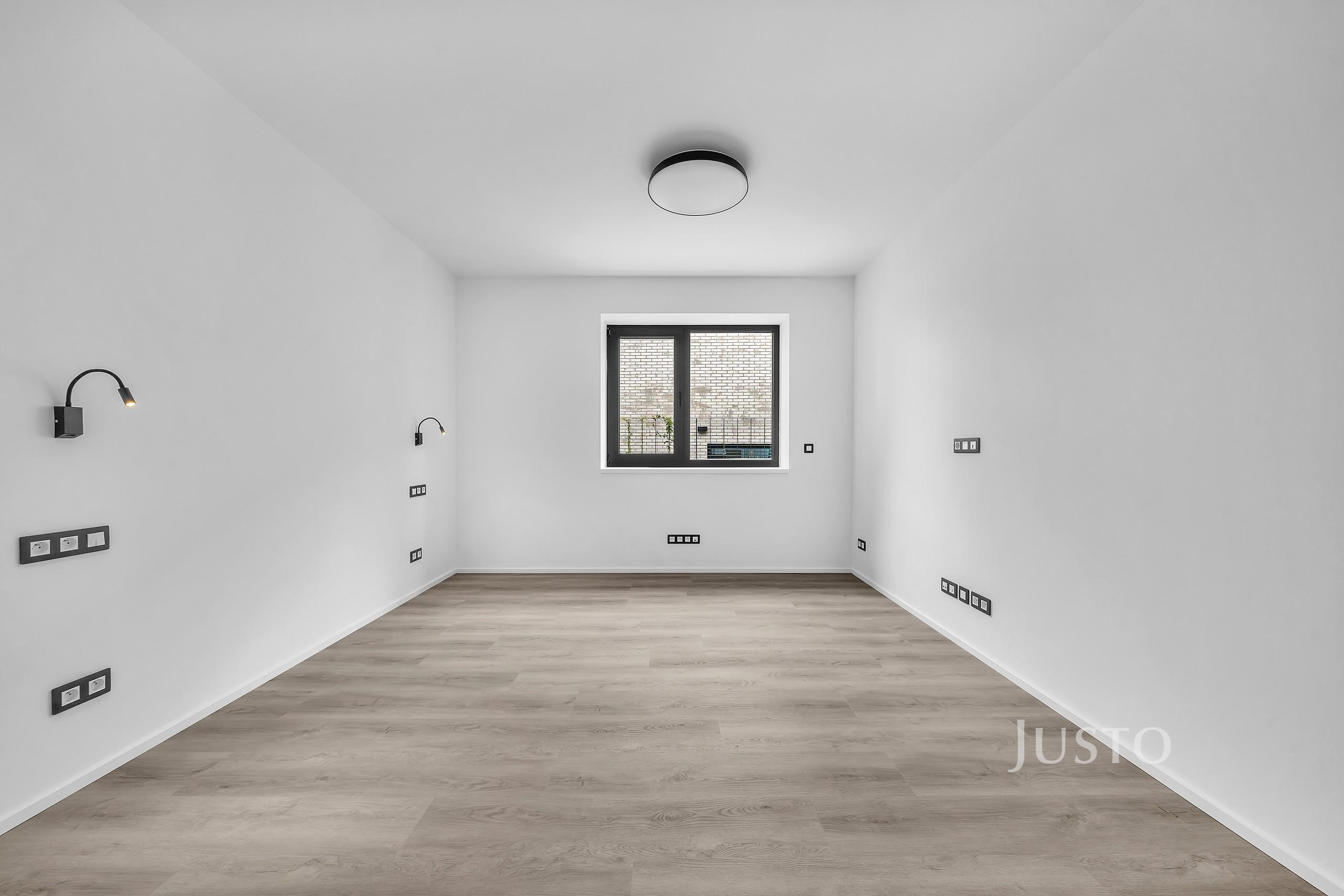 Dispozice bytu nabízí komfortní obývací pokoj s kuchyňským koutem (27,8 m²), dvě neprůchozí ložnice (17,1 m² a 16,8 m²), koupelnu (7,4 m²) vybavenou vanou i sprchovým koutem, samostatné WC (1,2 m²) a prostornou chodbu (9 m²). Kuchyňská linka je zhotovena na míru a je vybavena lednicí, mrazákem, myčkou a elektrickou varnou deskou. Byt je nabízen nevybavený, což umožňuje novým nájemcům zařídit si interiér dle vlastních představ.