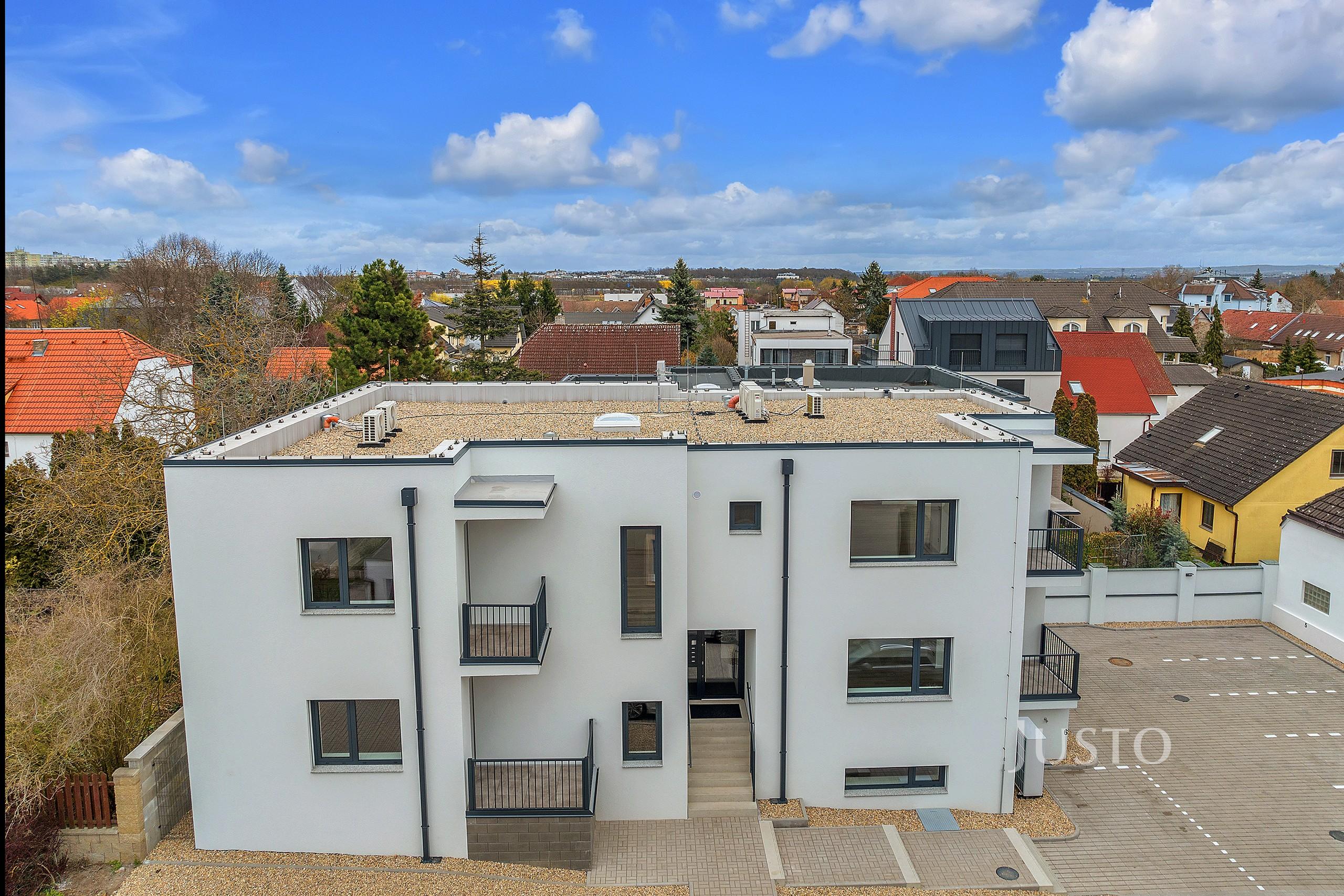 Velmi příjemným benefitem je terasa orientovaná do klidné části vnitrobloku, která poskytuje prostor pro relaxaci i posezení. Kvalitní moderní provedení bytu zahrnuje hliníková okna s venkovními roletami, podlahové vytápění napojené na tepelné čerpadlo a klimatizaci. Dům je zateplený a poskytuje vysoký standard bydlení.