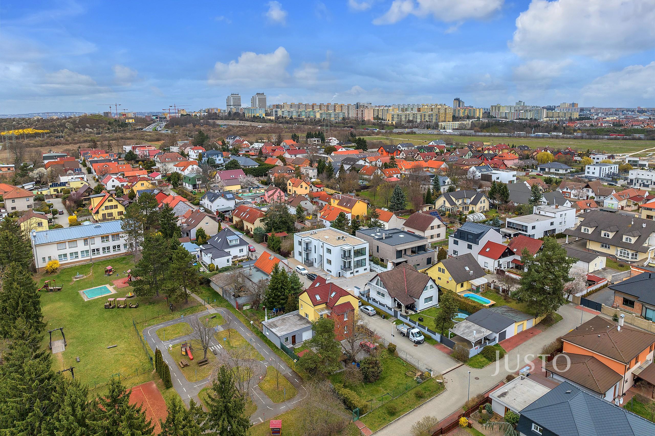 V okolí bytu je veškerá občanská vybavenost – v docházkové vzdálenosti se nachází restaurace (např. Pizzeria & Ristorante Di Carlo, pivovar Spojovna), základní i střední školy, sportovní areály a supermarket. Výborná dopravní dostupnost je zajištěna městskou hromadnou dopravou – v blízkosti je autobusová zastávka i stanice metra Opatov. Parkování je zajištěno na vyhrazeném místě přímo u domu.
